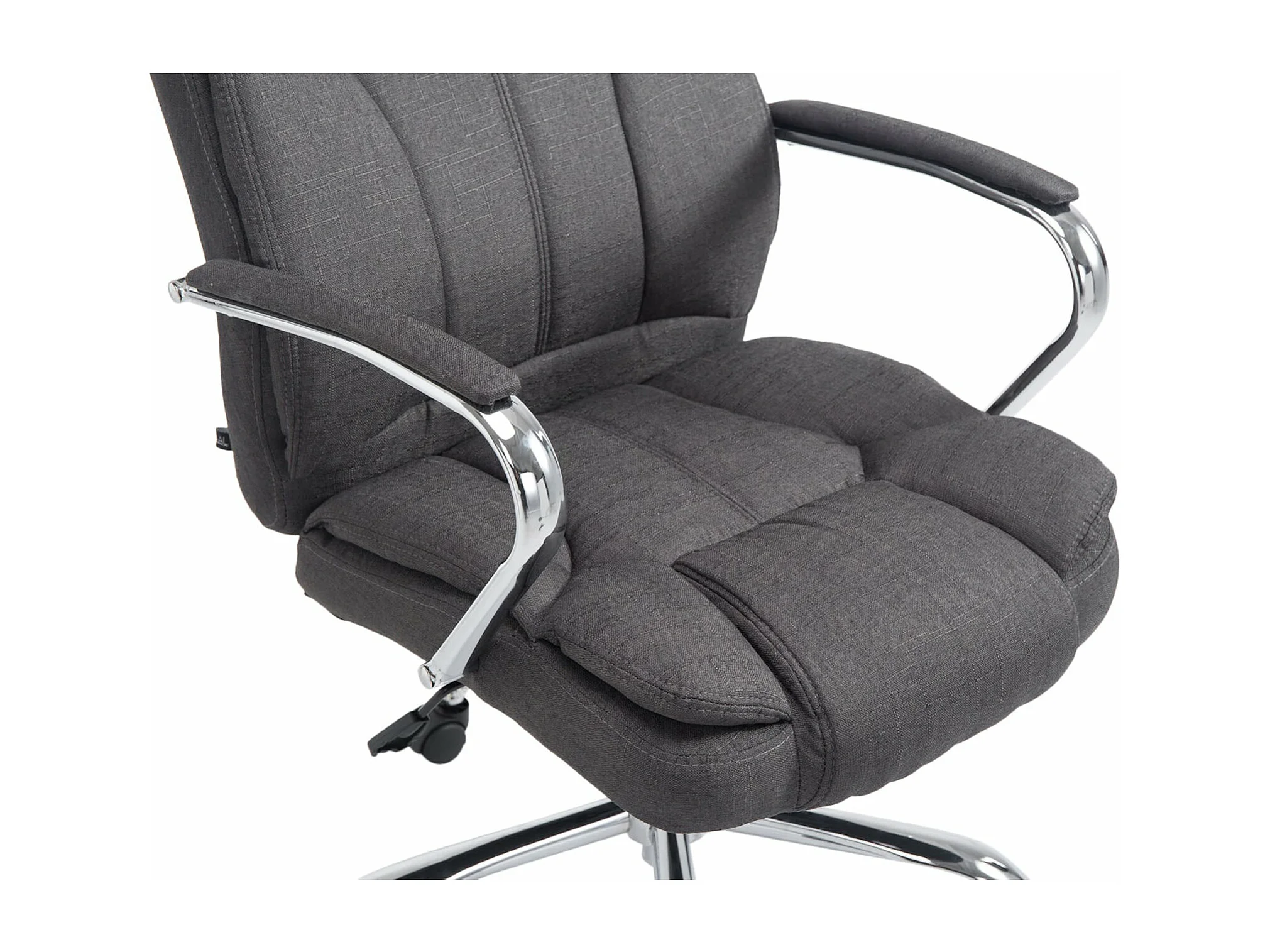Silla de oficina con ruedas ancho del asiento XXL en tela gris oscuro y metal cromado M10_003094