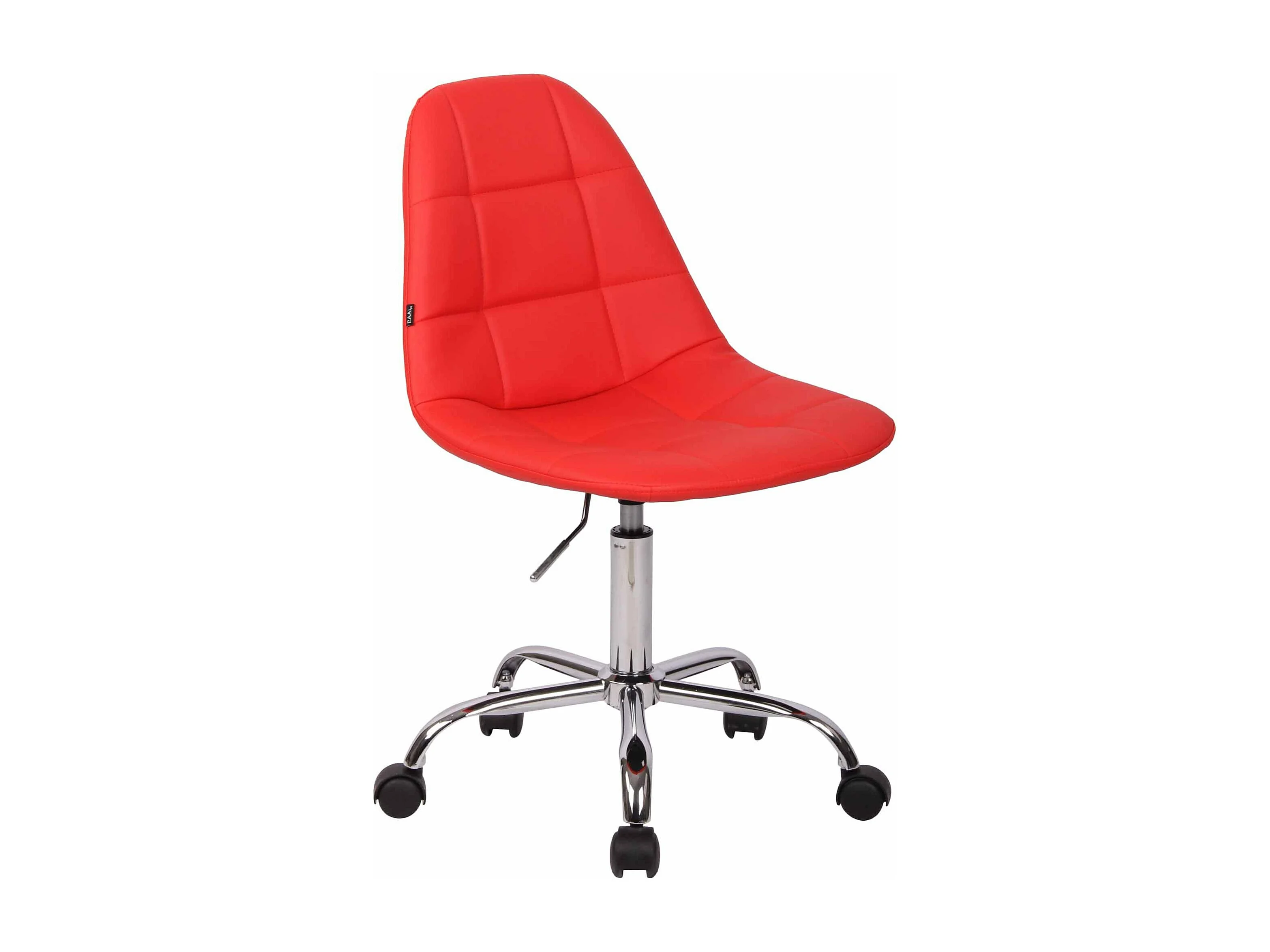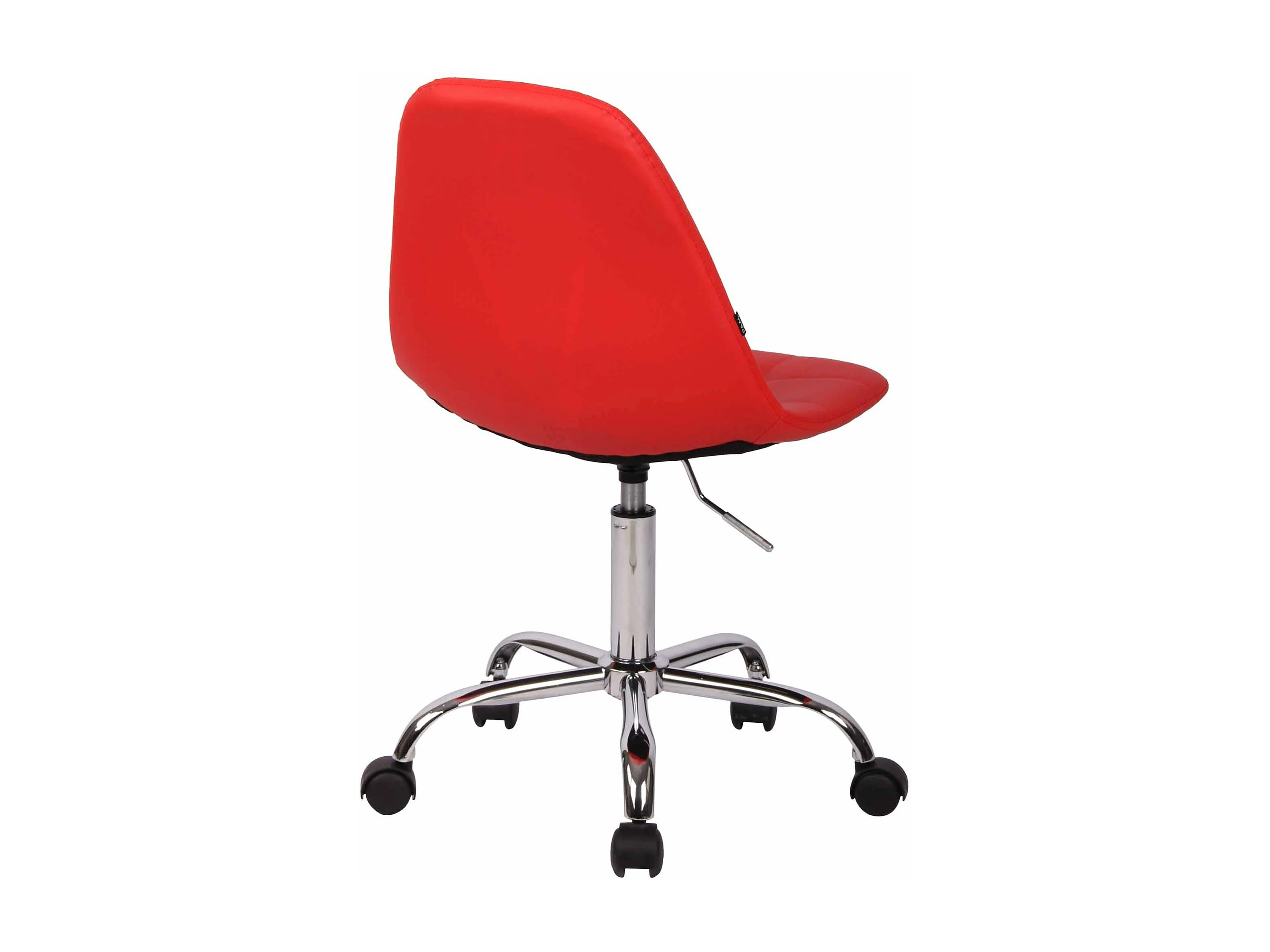 Silla de oficina con ruedas costuras decorativas rectangulares en polipiel rojo y metal cromado M10_002916