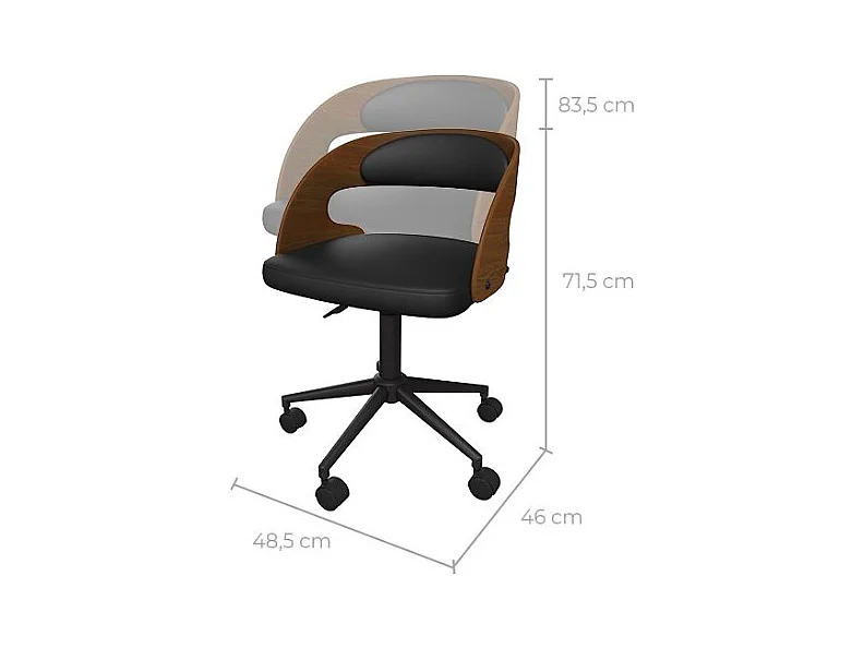 Silla de oficina giratoria con ruedas en madera y PU negro - Basile