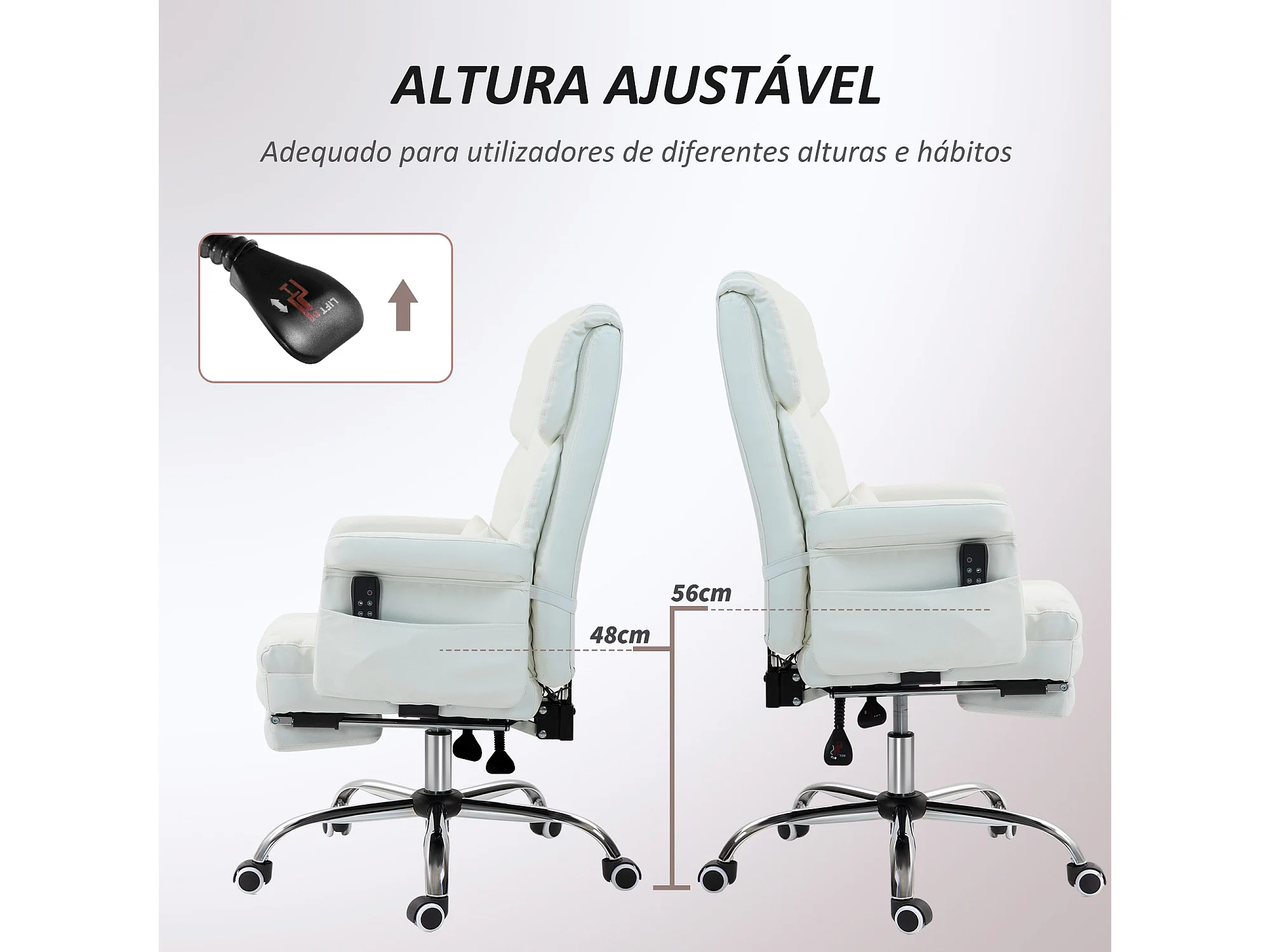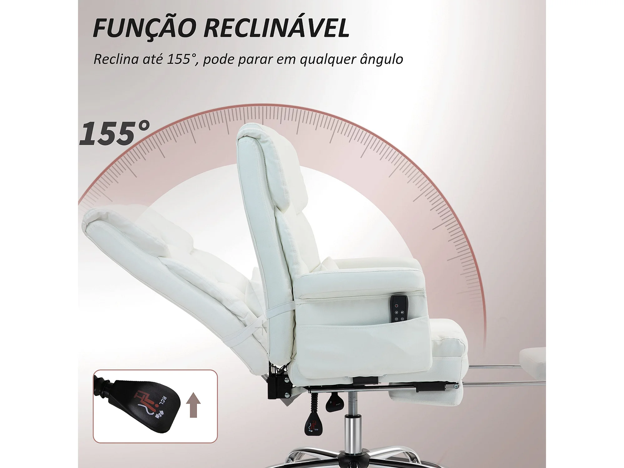 Silla de oficina Confort Homcom reclinable + 6 puntos de masaje + reposapiés retráctil blanco 107-115x69x65 cm