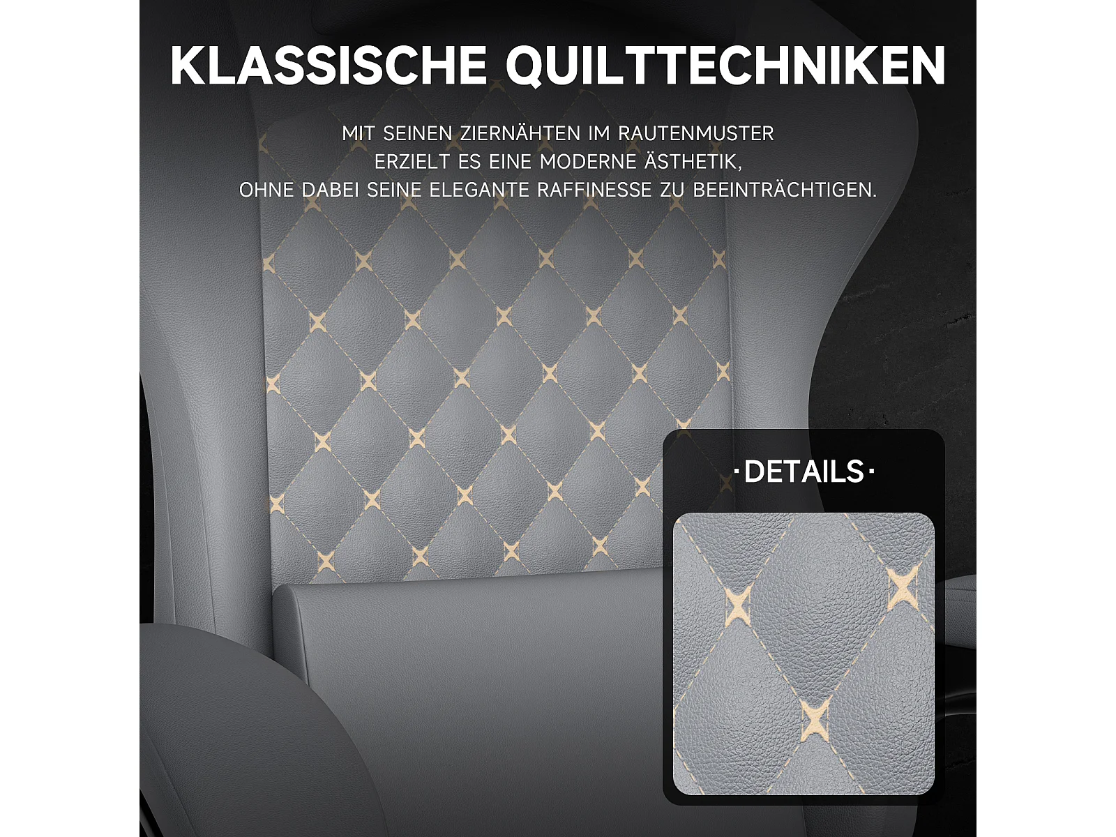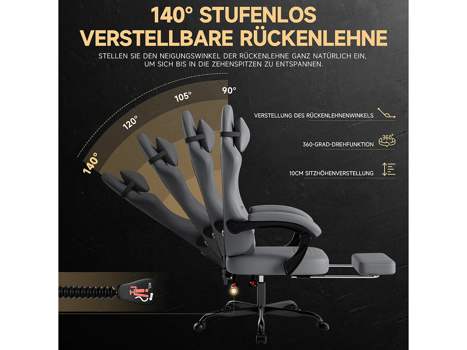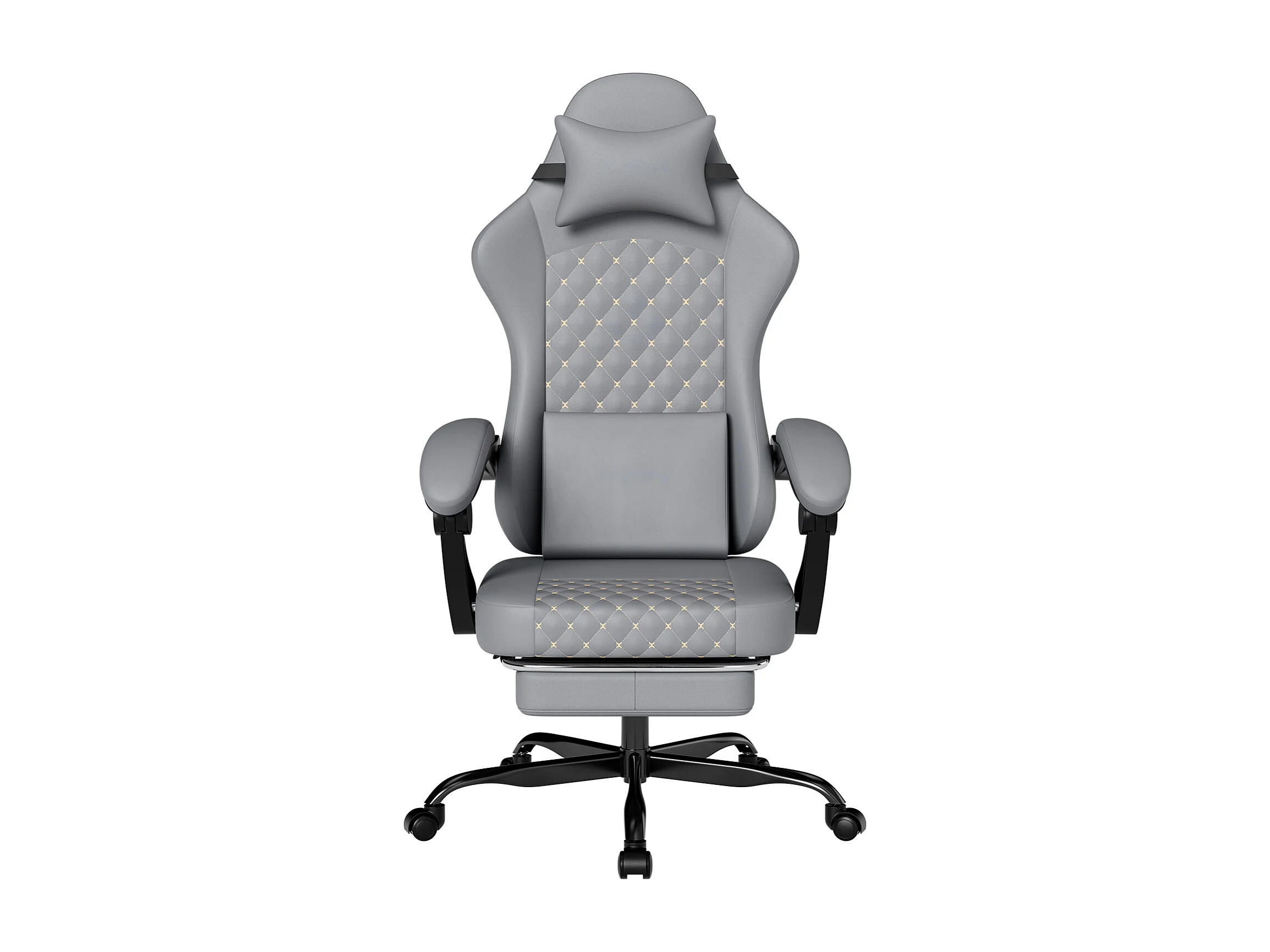 Silla de oficina con reclinación de 90/105/135° y reposapiés - Silla gaming de piel sintética - Gris
