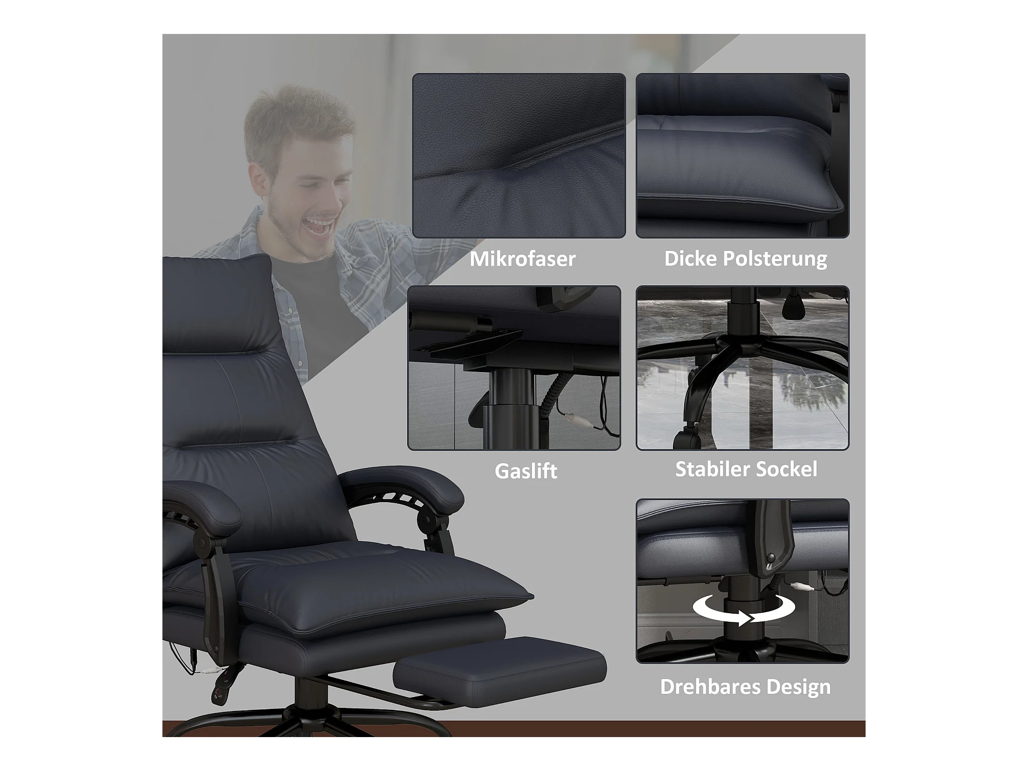 Silla de oficina de masaje de microfibra, giratoria, ajustable con reposapiés, gris oscuro