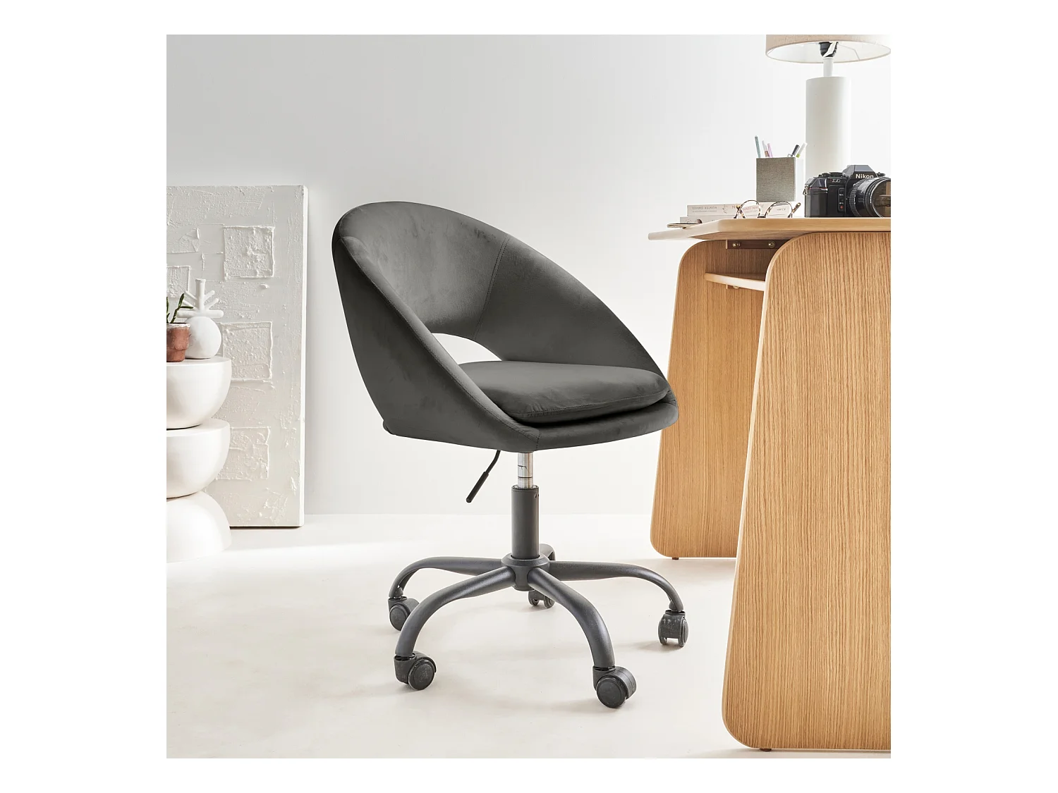 Silla de oficina de terciopelo gris oscuro