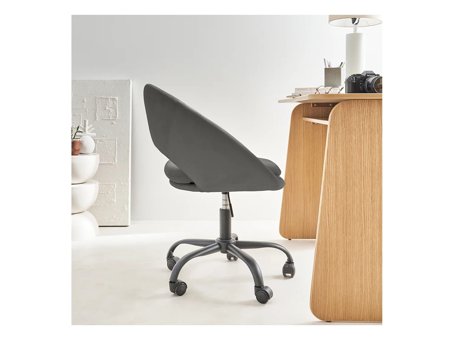 Silla de oficina de terciopelo gris claro ES108585