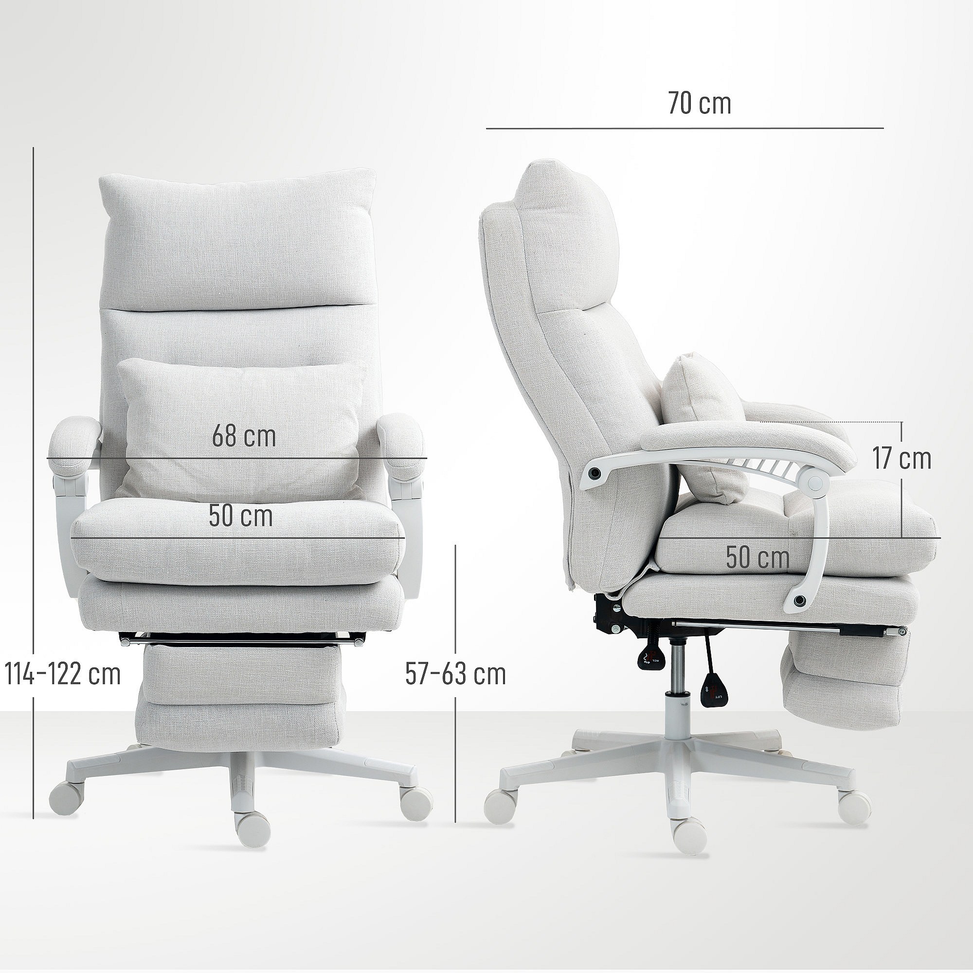 Silla de oficina ergonómica con masaje de 6 puntos, giratoria, con reposapiés, color crema