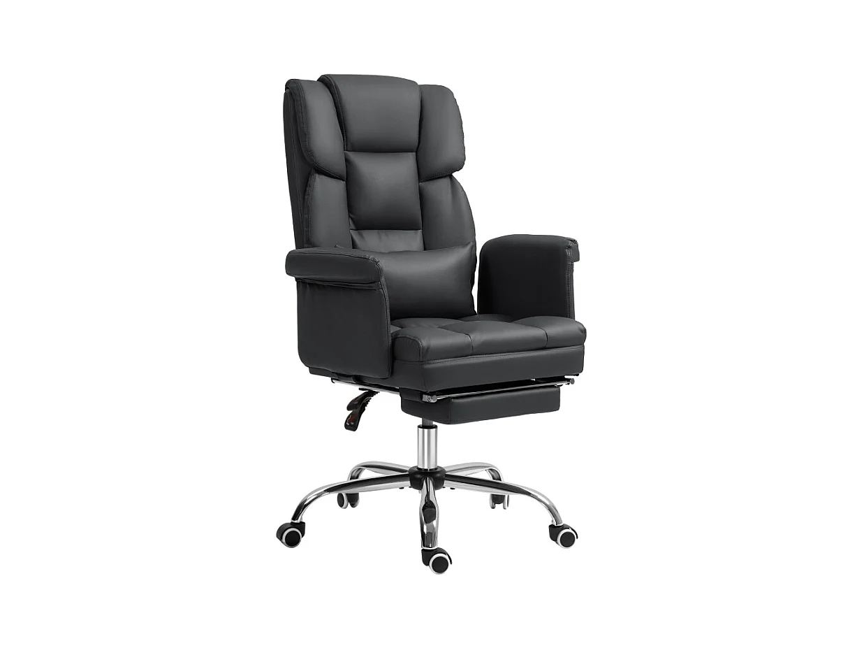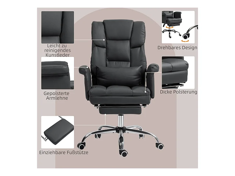 Silla de oficina ergonómica en piel sintética con reposapiés, regulable en altura, Negro 66x72x122-130 cm