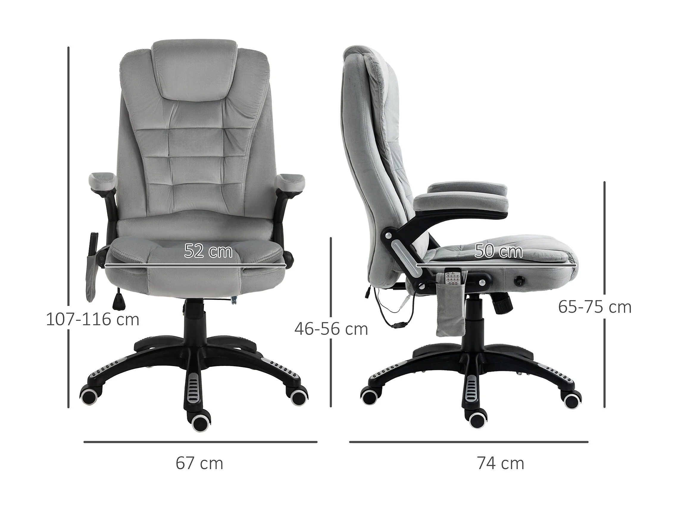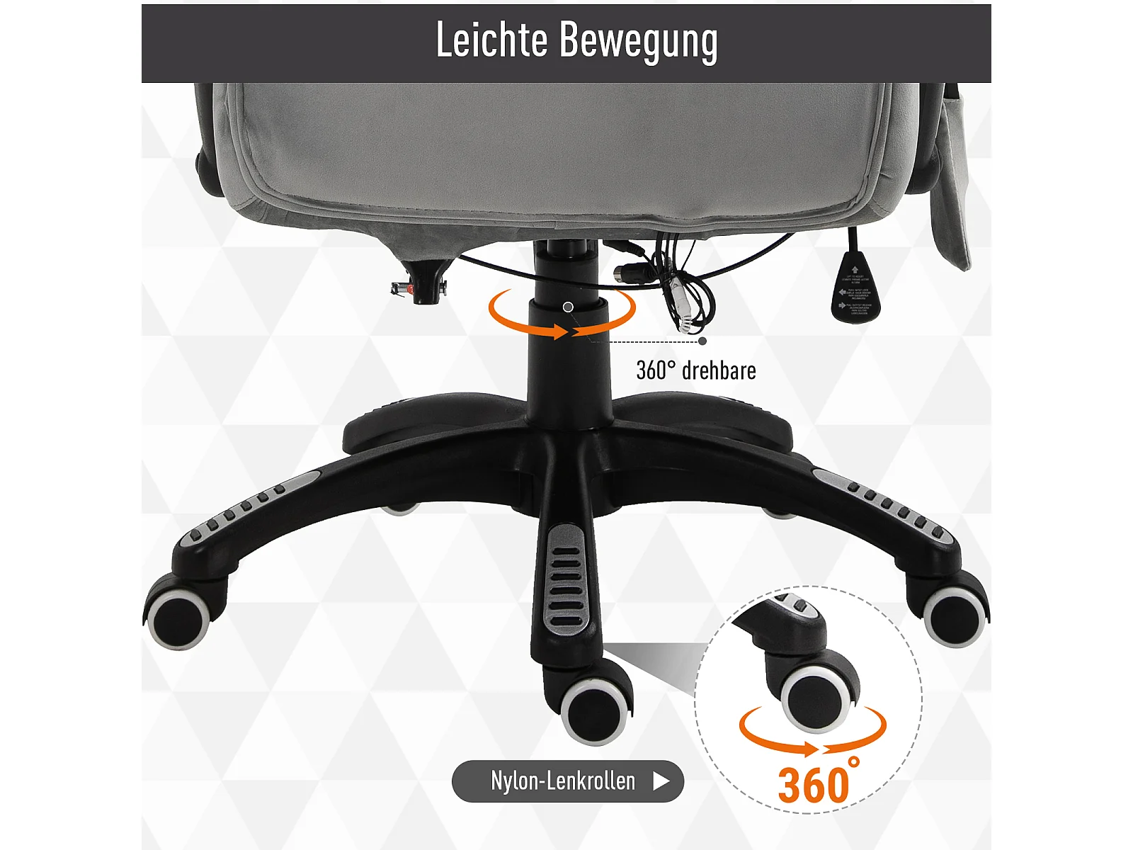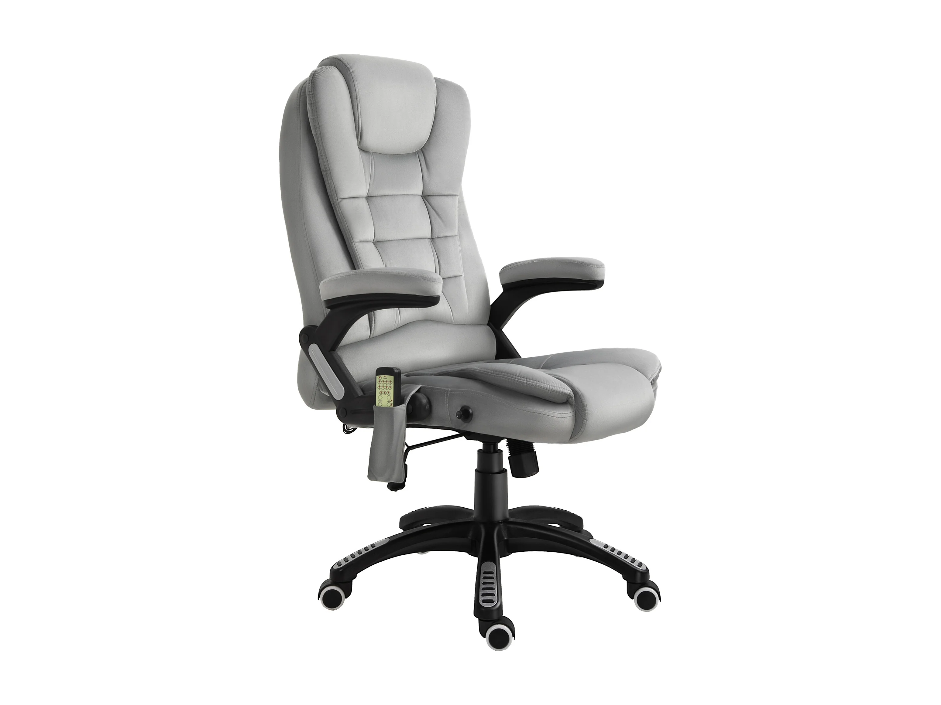 Silla de oficina ergonómica de masaje de PU, reclinable, con calefacción, gris, 68 x 72 x 110-120 cm