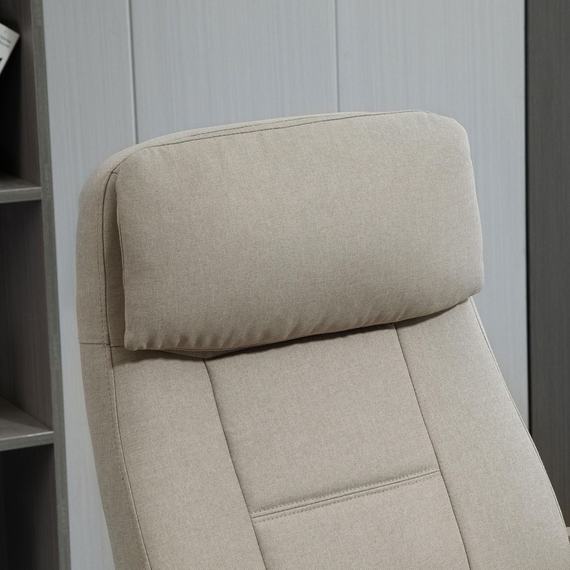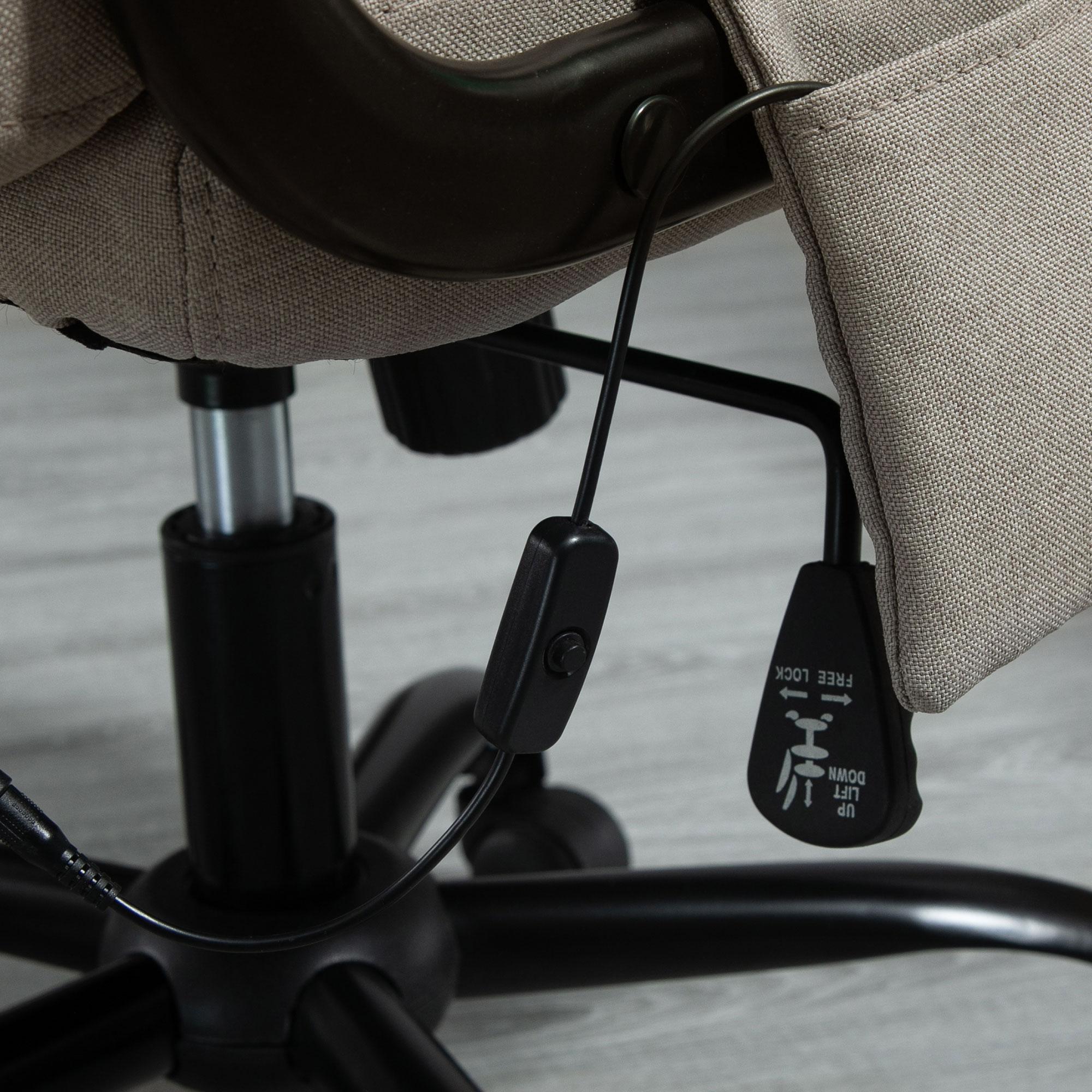 Silla de oficina ergonómica de tela con función de balanceo de masaje USB, beige para oficina en casa