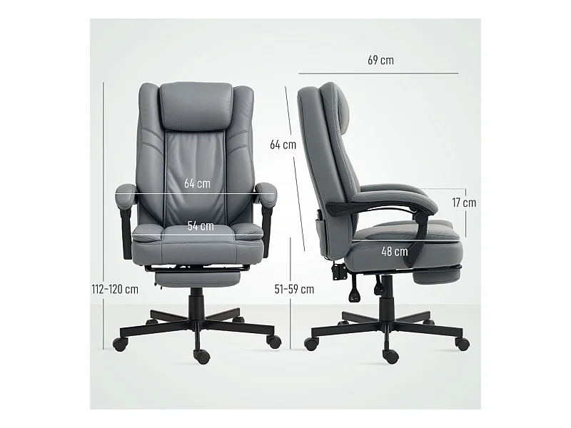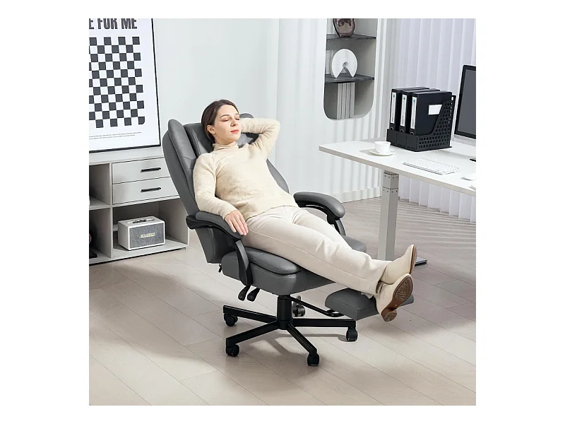 Silla de oficina ergonómica en piel sintética con masaje, inclinación y giro, color gris
