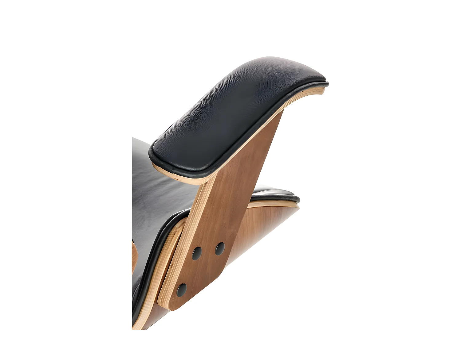 Silla sillón giratorio asiento para ordenador oficina estudio madera curvada y polipiel negra 02_0024154