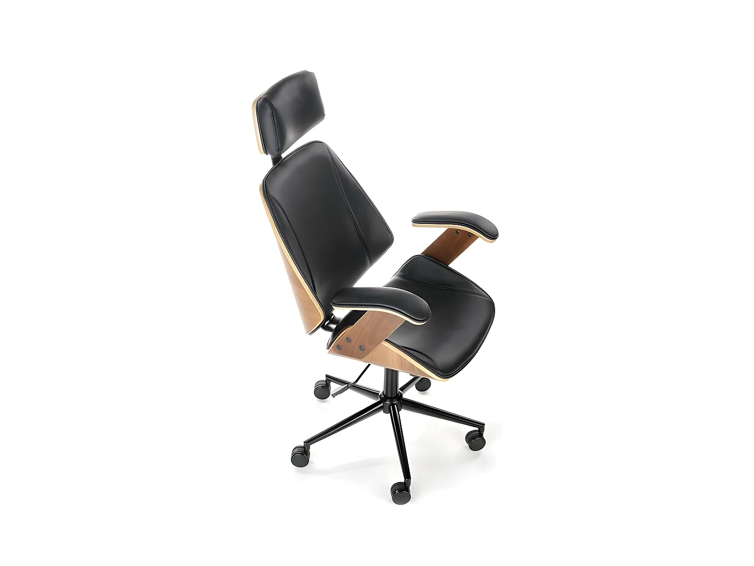 Silla de escritorio moderna polipiel negro/madera clara ARAMIS