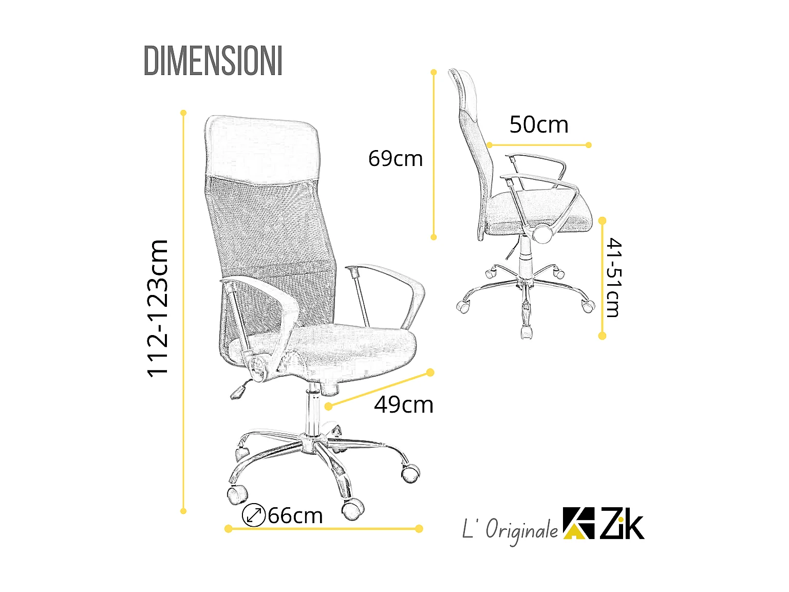 Silla de Oficina Ergonómica Giratoria con Reposabrazos, Ejecutiva, Negro - ZIK