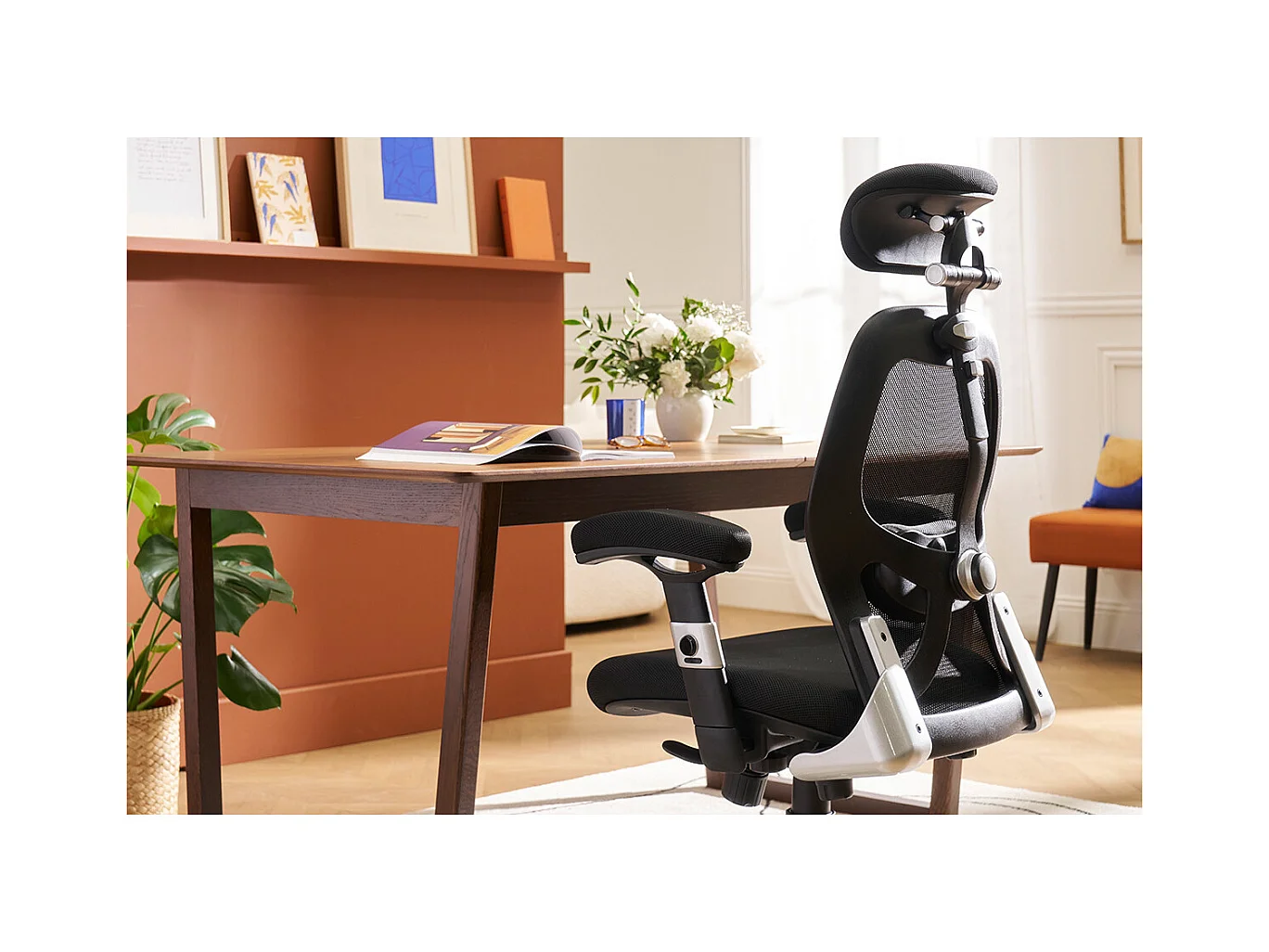 Silla de oficina ergonómica con respaldo, reposacabezas y reposabrazos de malla, Negra 120 kg