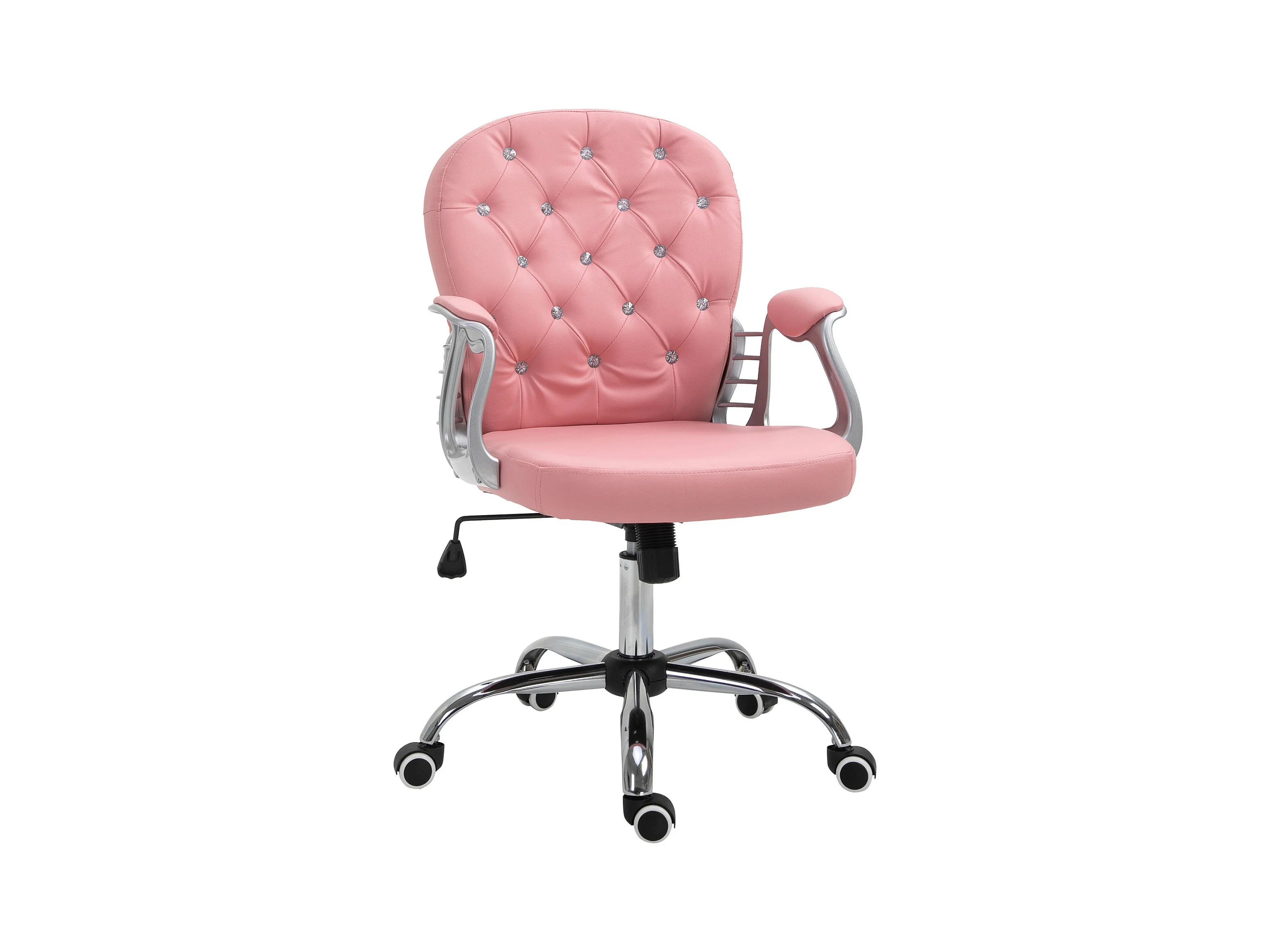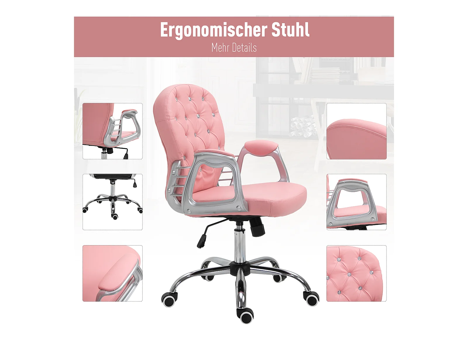 Silla de oficina ergonómica PU rosa con respaldo acolchado silla ejecutiva 59,5x60,5x95-105cm