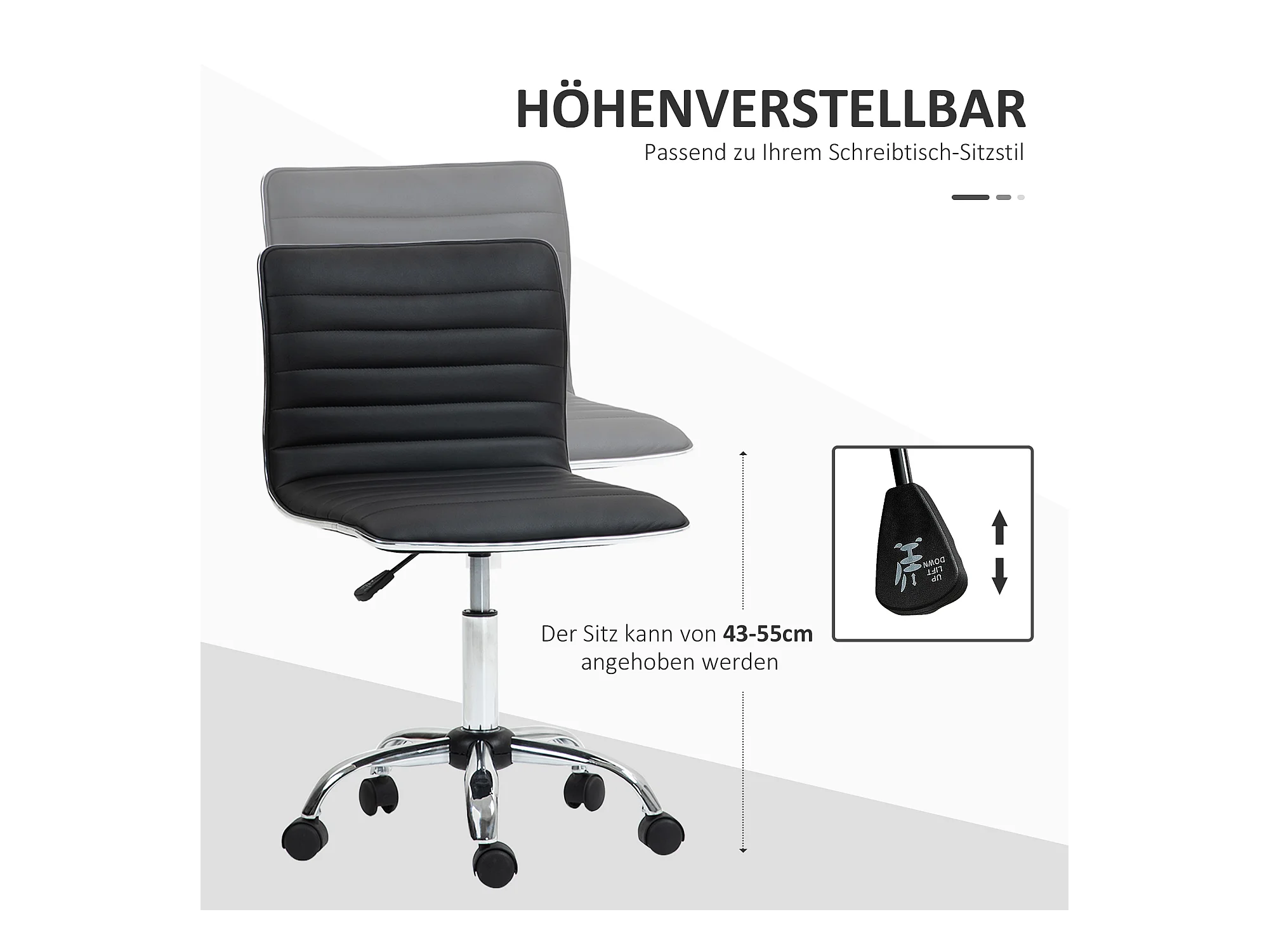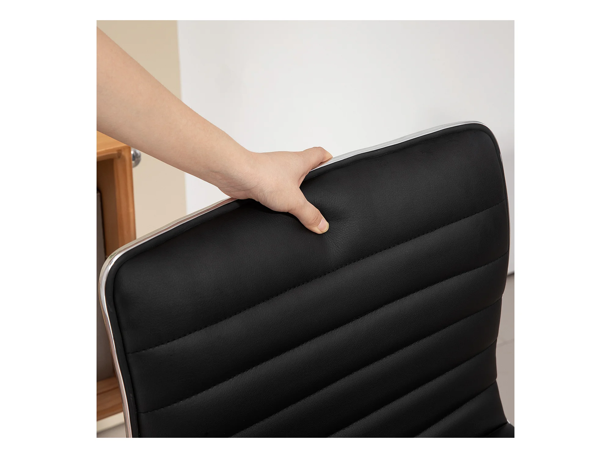Silla de oficina giratoria ajustable de piel sintética con respaldo y ruedas, color negro
