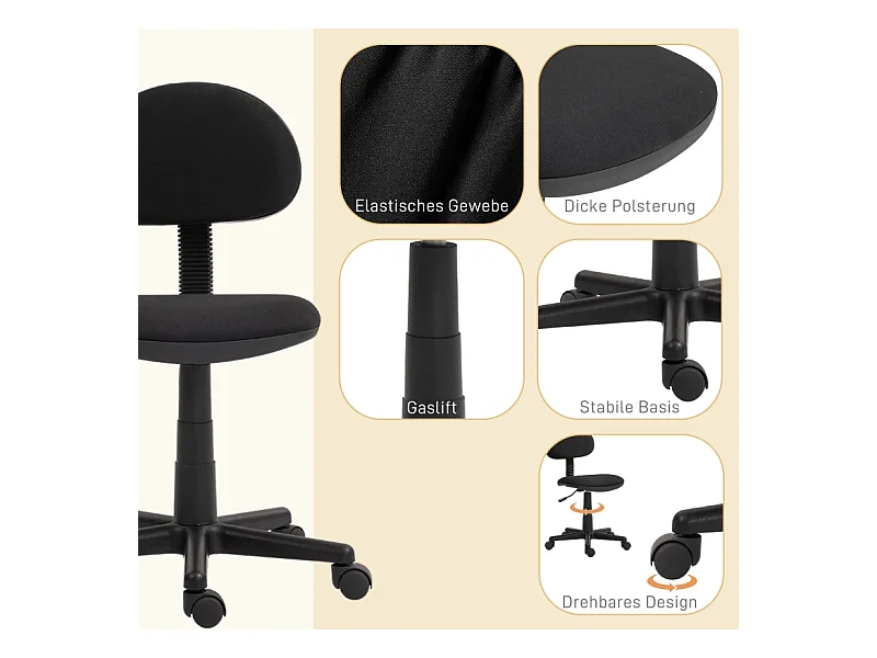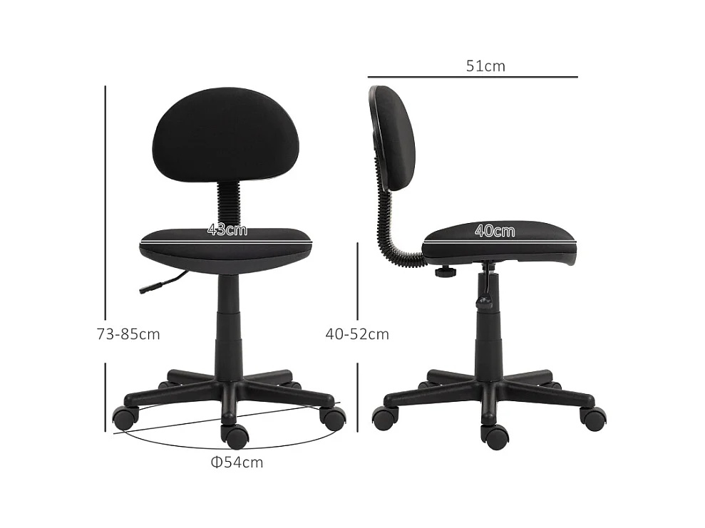 Silla de oficina giratoria ergonómica de tela elástica sin reposabrazos para ordenador color negro