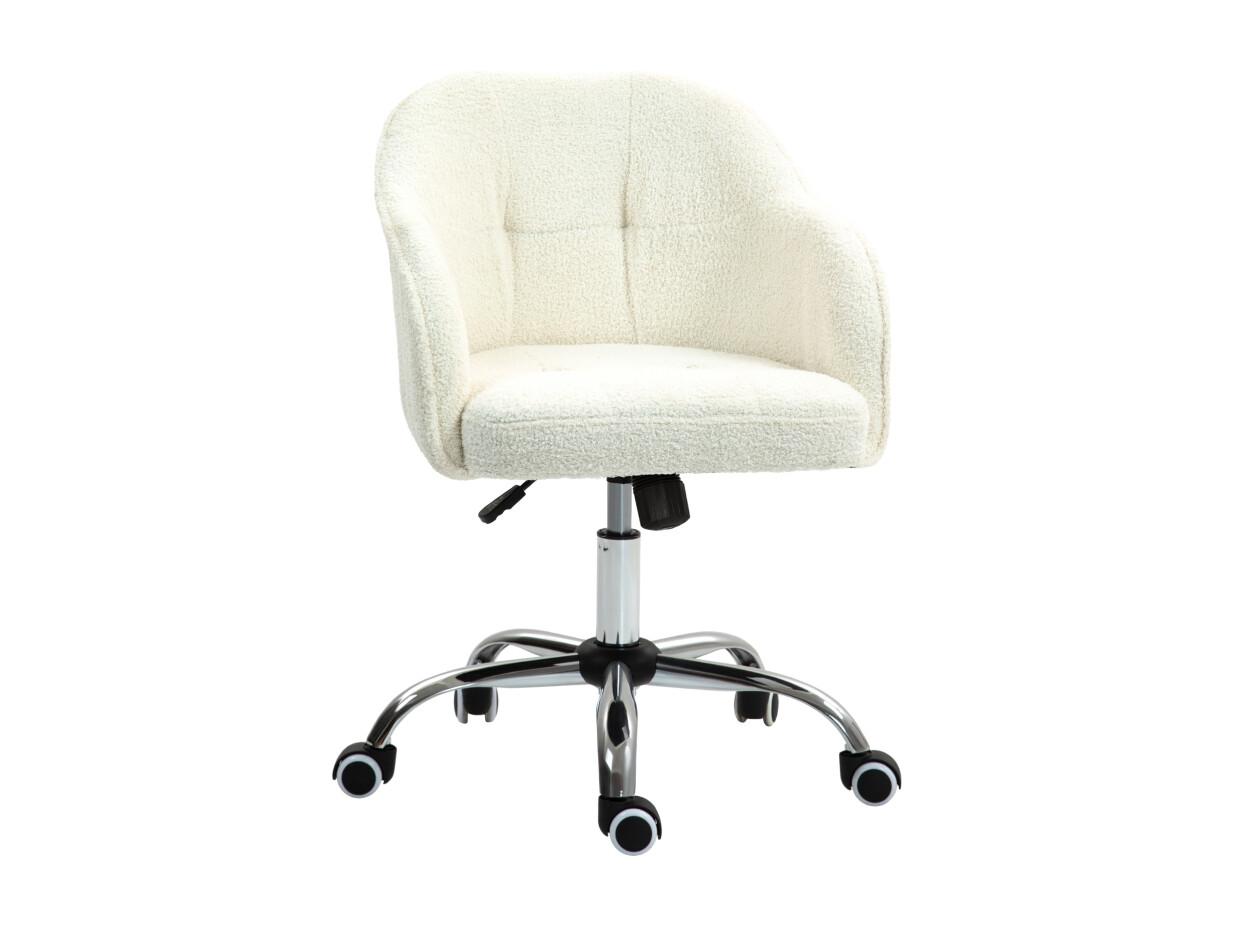 Silla de oficina ergonómica con reposabrazos, acolchado de lana, giratoria, ajustable color crema
