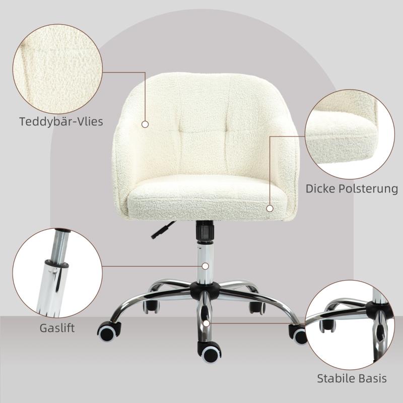Silla de oficina giratoria ergonómica Teddysamt, altura regulable, color crema, Homeoffice