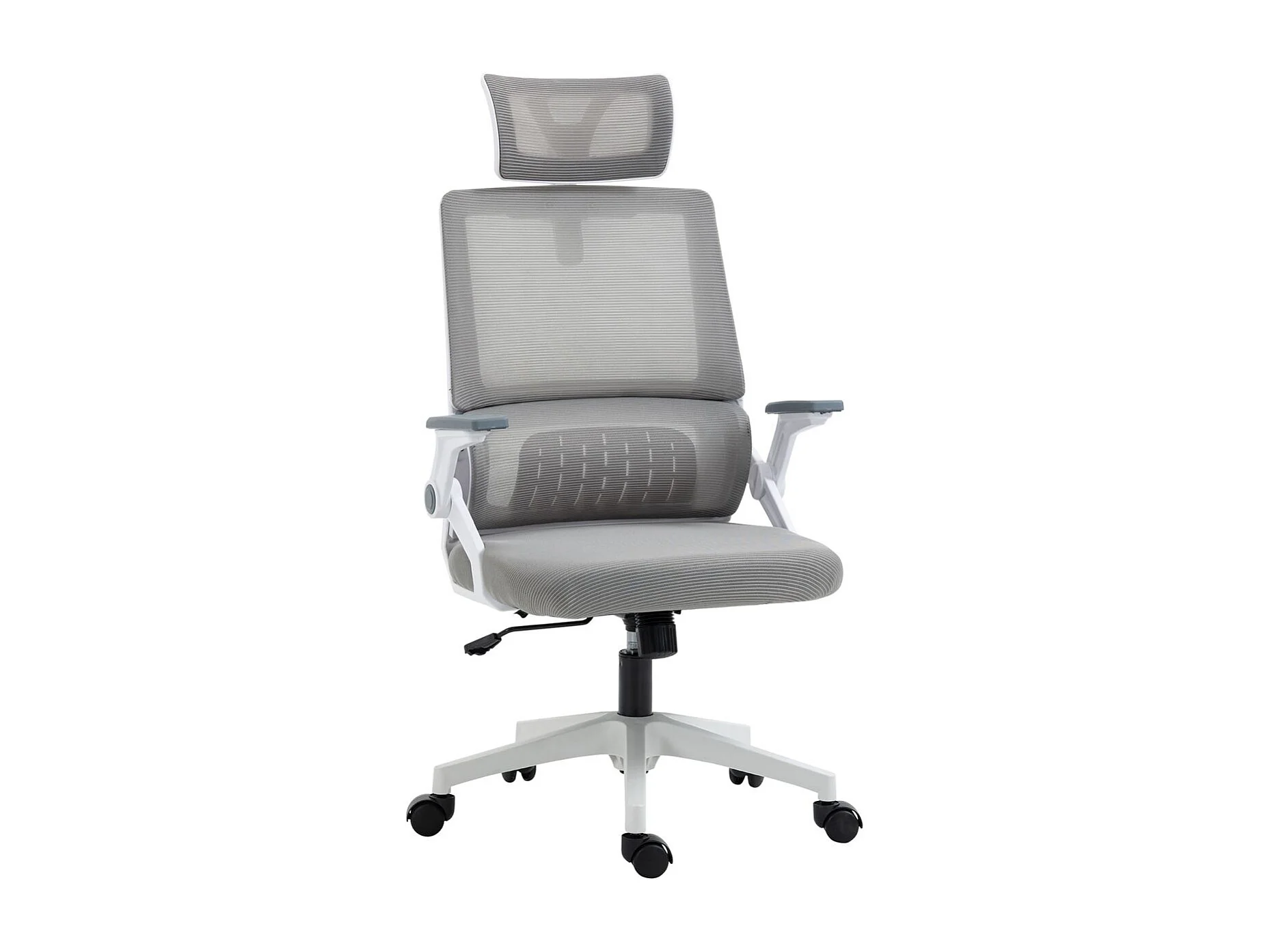 Silla de oficina ergonómica, reposacabezas y reposabrazos regulables, respaldo de malla gris (58x61x119cm)