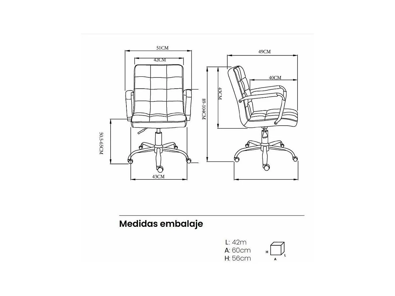 Silla despacho giratoria elevable acabado negro, 90-97cm(alto) 58cm(ancho) 64cm(largo).