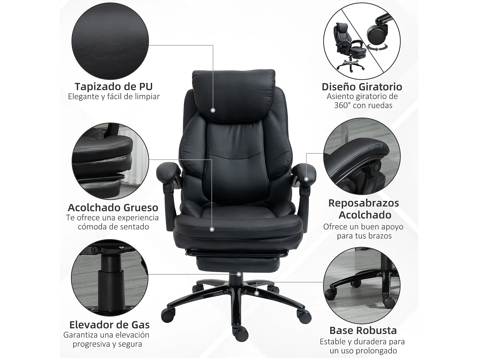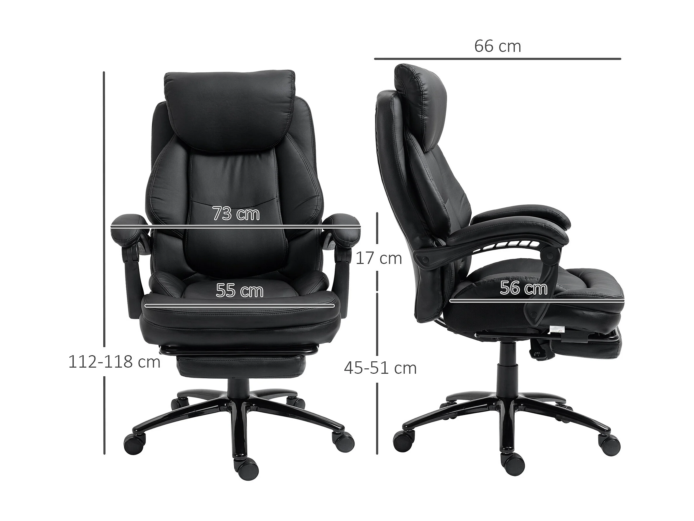 Silla de oficina negro 73x66x118 cm Vinsetto