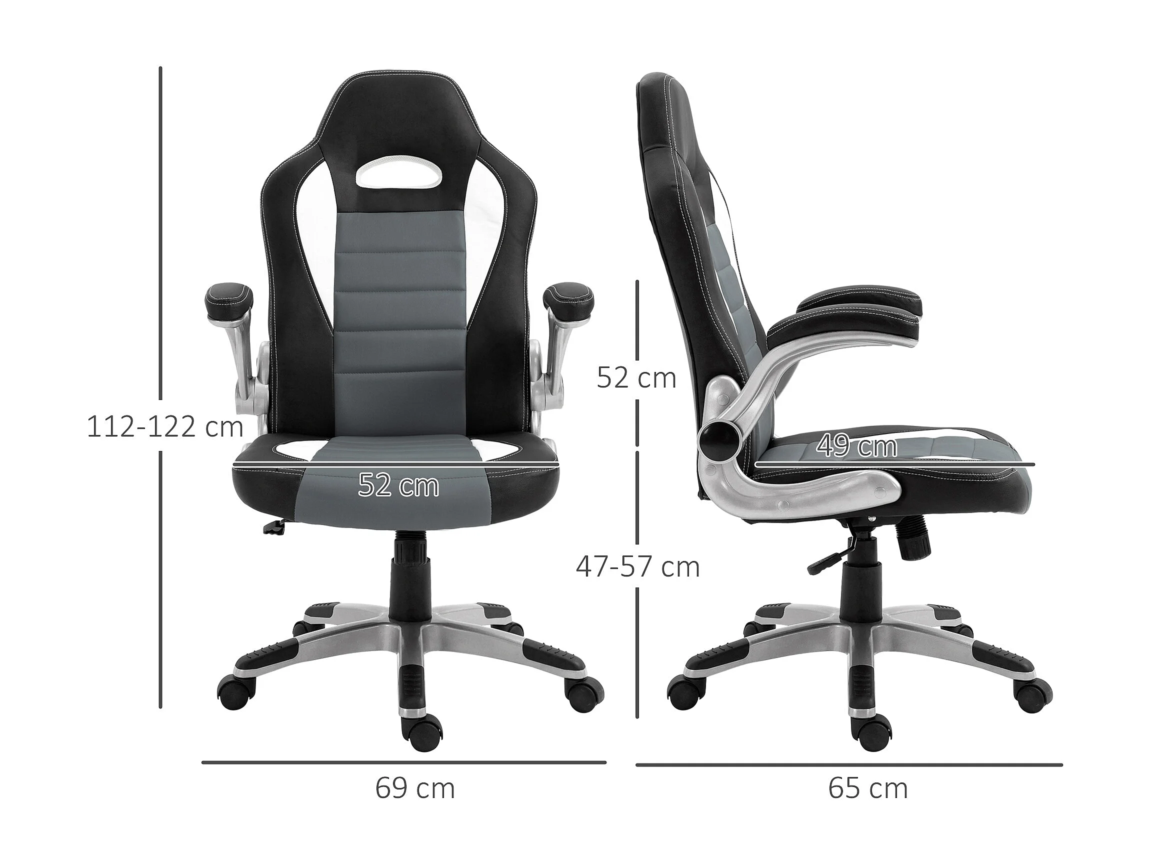 Silla de oficina negro, gris, blanco 65x69x122 cm HOMCOM
