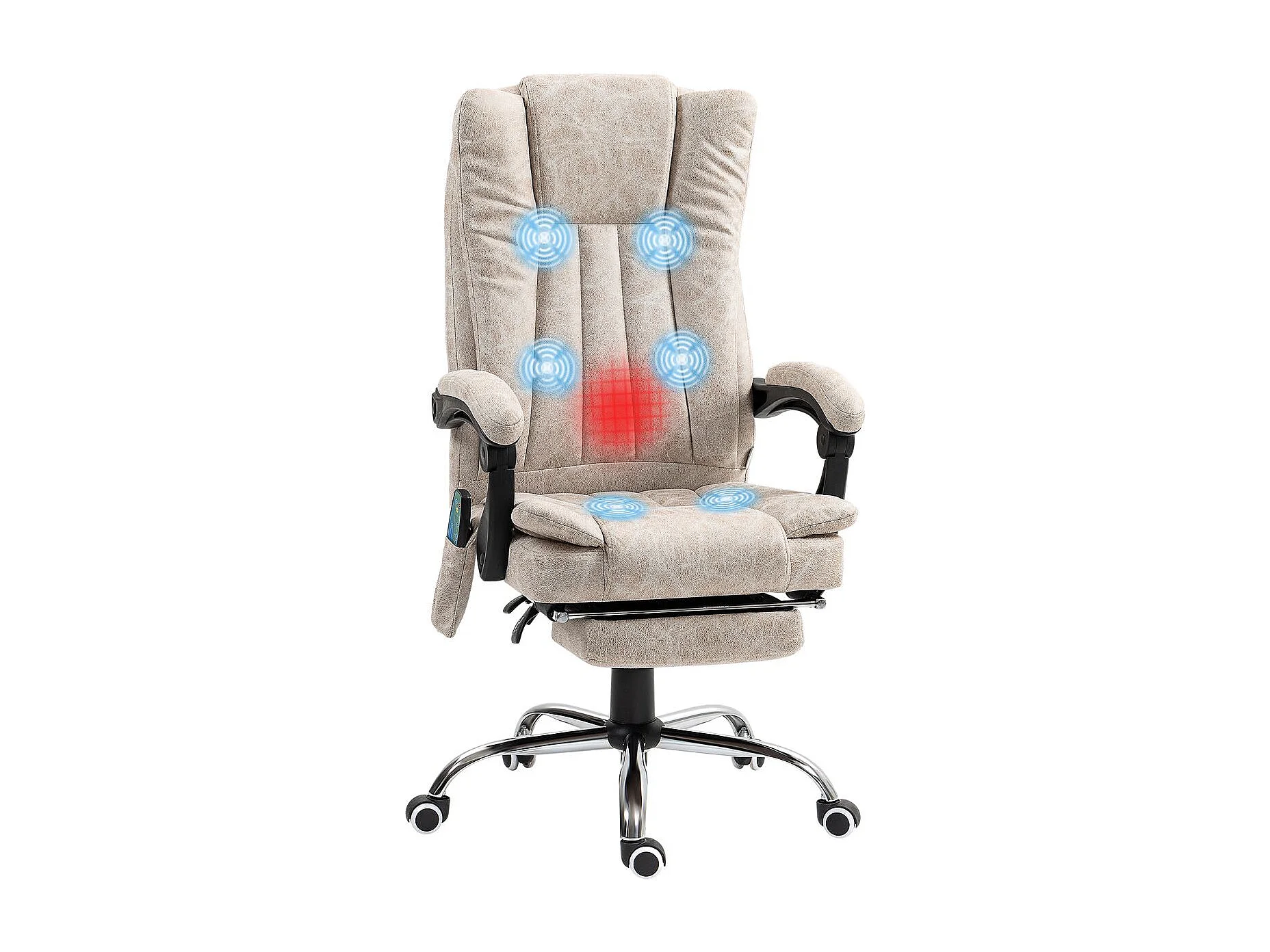 Silla de oficina Orquídea Homcom 6 puntos de masaje + calefacción + reposapiés crema 113-120x70x62 cm