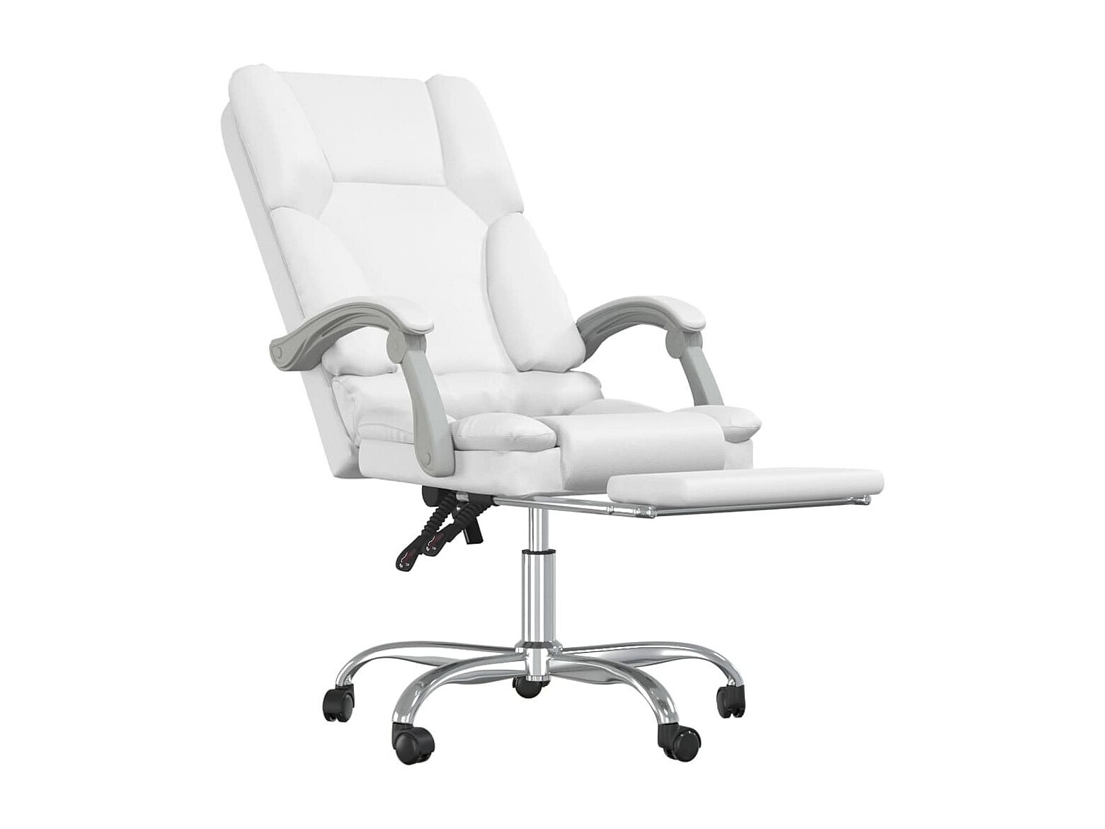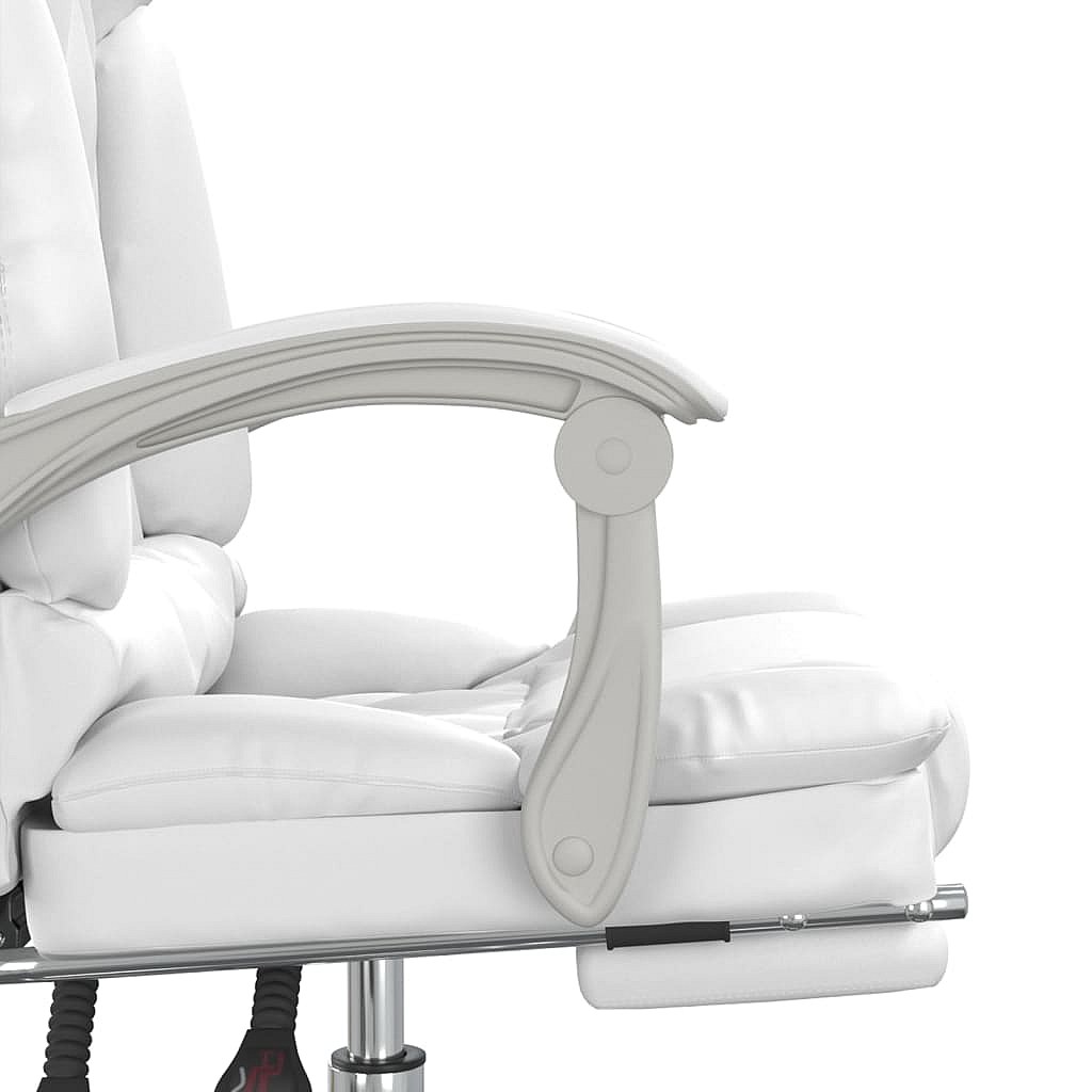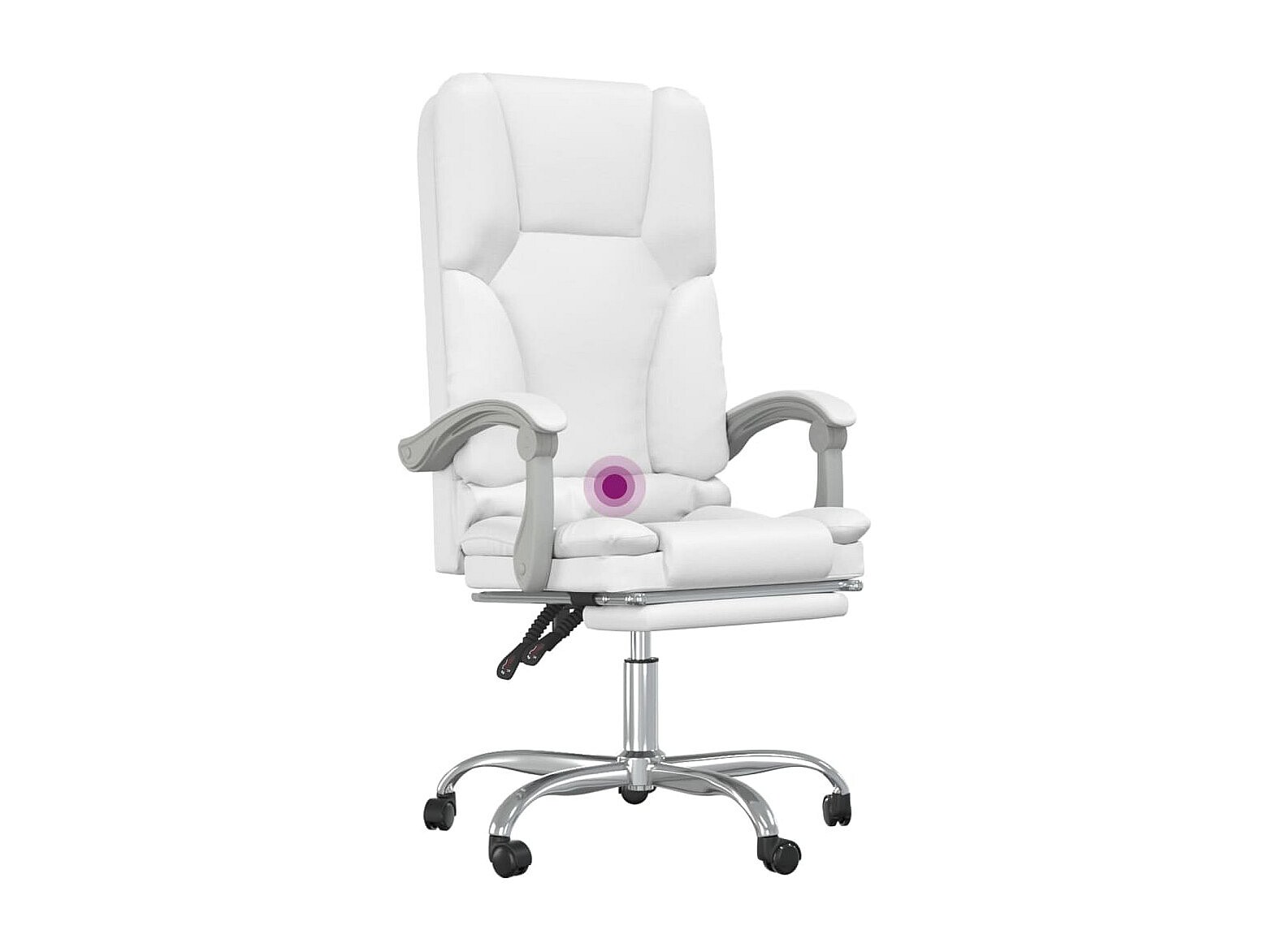 Clicnbuy le ofrece : Con un diseño minimalista, esta moderna silla de oficina reclinable con función de masaje combina elegancia y comodidad, por lo que atraerá todas las miradas en tu espacio de trabajo. Material duradero: El cuero sintético de primera calidad es un material muy duradero. Es resistente a las manchas, por lo que es fácil de limpiar con un paño húmedo. Además, la superficie lisa da un aspecto lujoso y la belleza del cuero auténtico.Función de masaje: El punto de masaje en el respaldo calma la fatiga de forma eficaz y ayuda a que te relajes mientras trabajas.Respaldo y altura regulables: Está especialmente diseñado con una función reclinable para que puedas ajustar el respaldo y el reposapiés según prefieras. Utiliza la palanca para ajustar la altura del asiento a tu gusto.Diseño práctico: El diseño giratorio de 360 grados permite un amplio rango de movimientos. Además, resulta práctica de mover gracias a las ruedecitas.Estructura robusta y estable: Las estructuras de metal y madera contrachapada garantizan su solidez y estabilidad. Información útil:Cada producto viene con un manual de montaje en la caja para facilitar el montaje.El producto tiene un conector USB, pero no se incluye la fuente de alimentación USB de 5 V certificada.