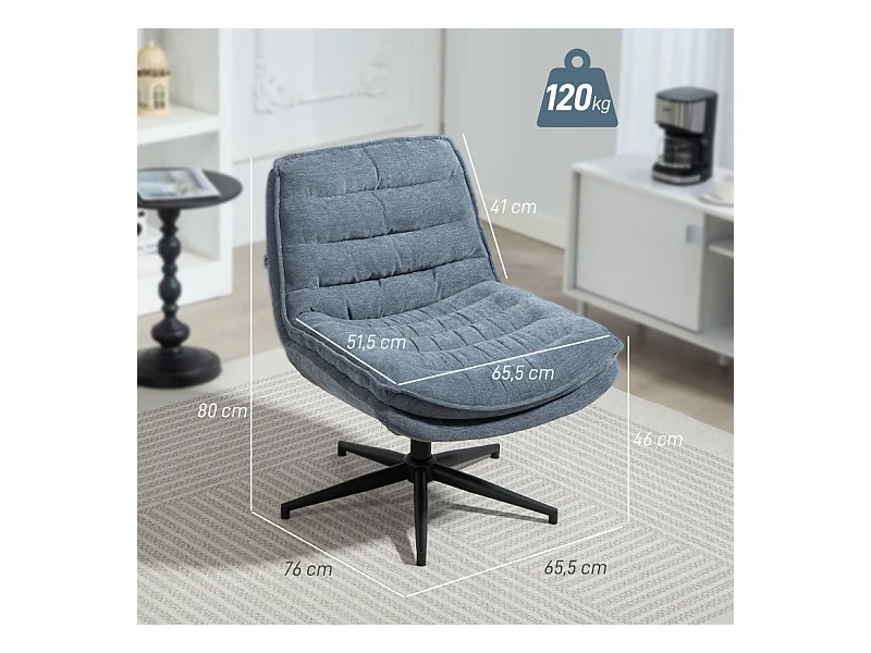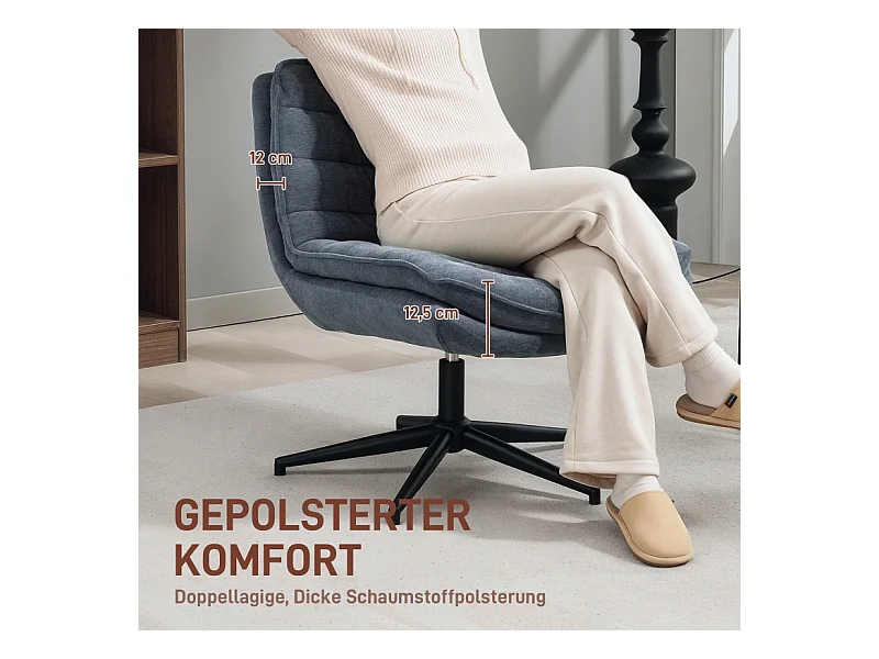 Silla de oficina sin brazos, tela de lino, asiento giratorio ancho para oficina en casa, gris oscuro