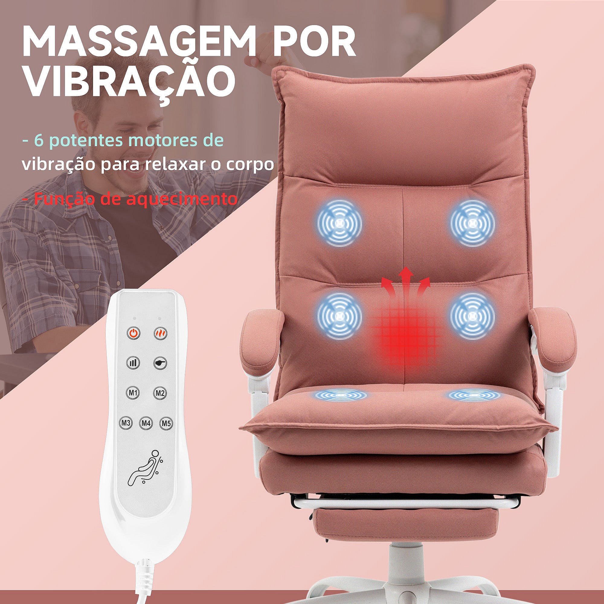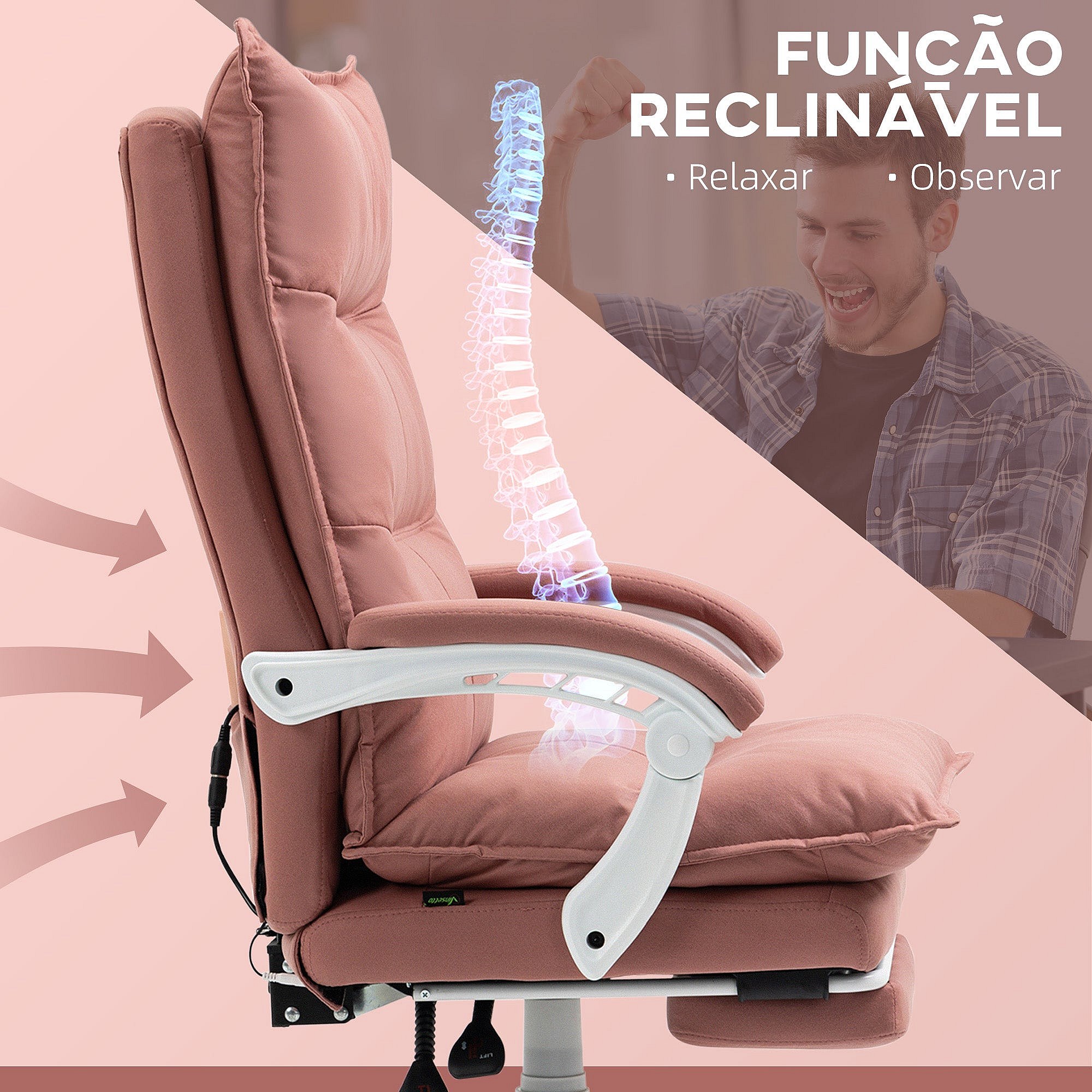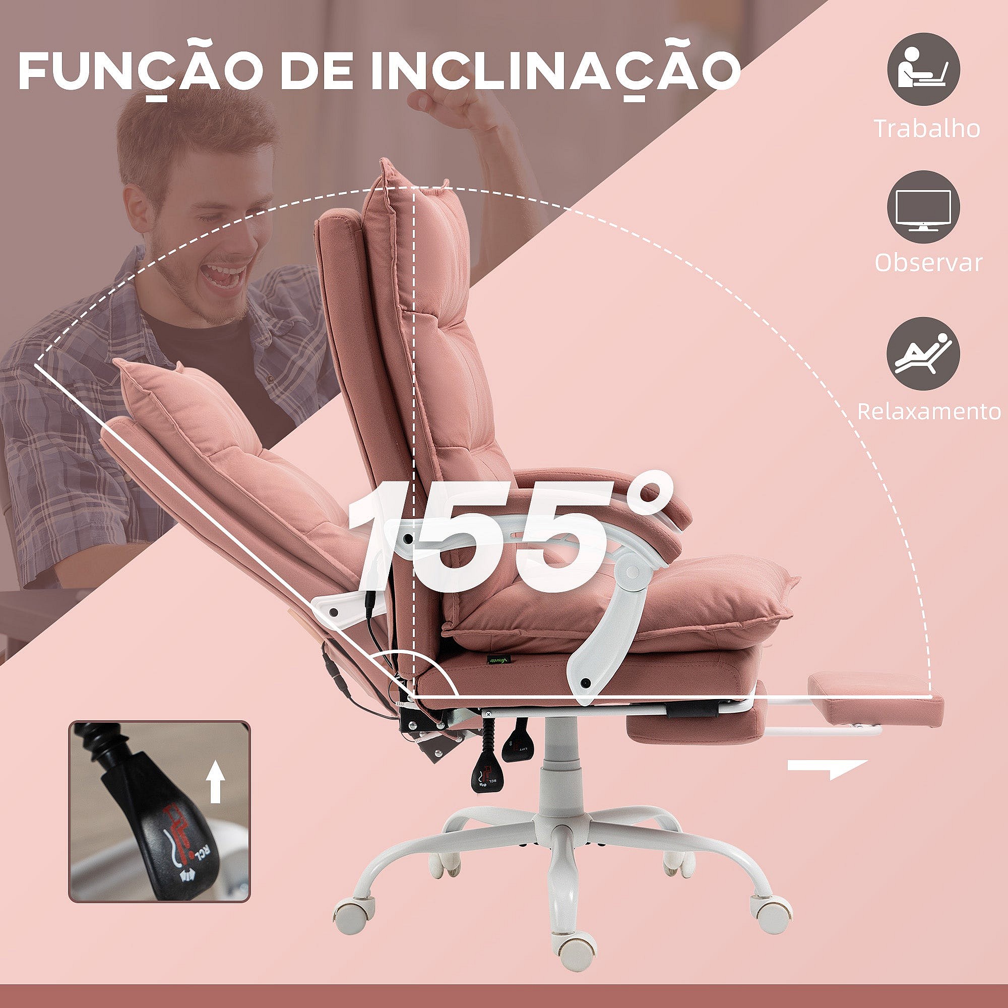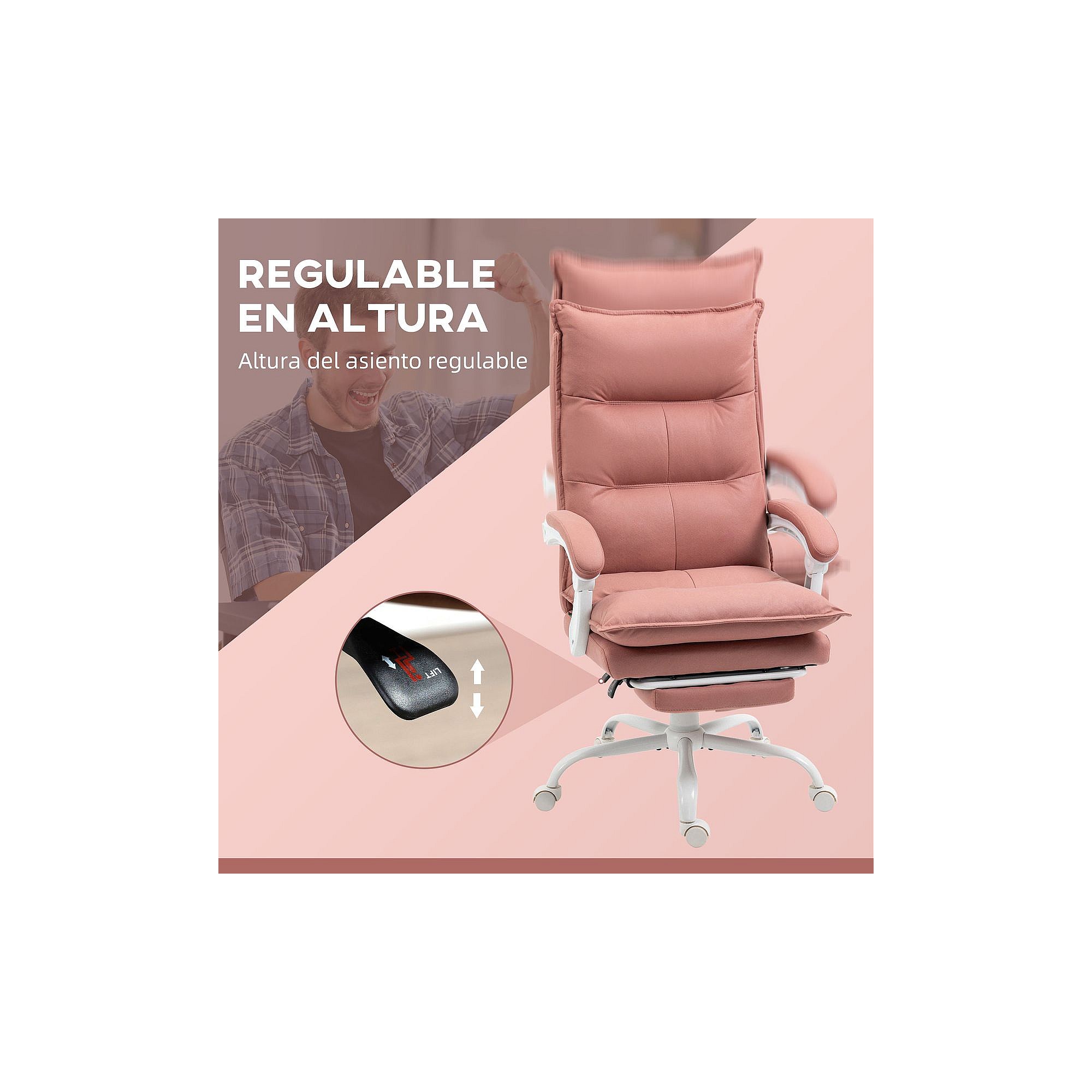 Silla de oficina ergonómica con masaje y calefacción, reclinable, tela, color rosa