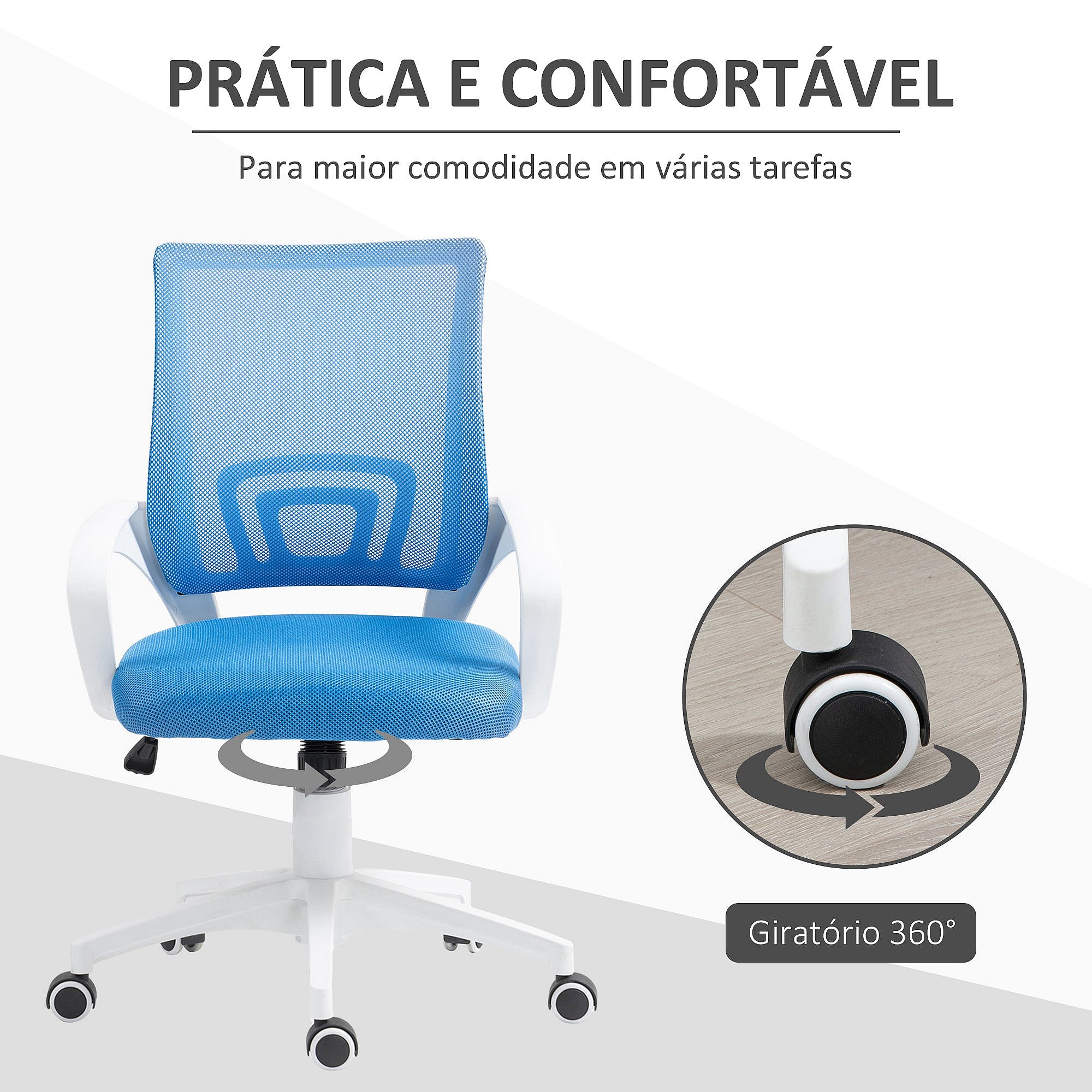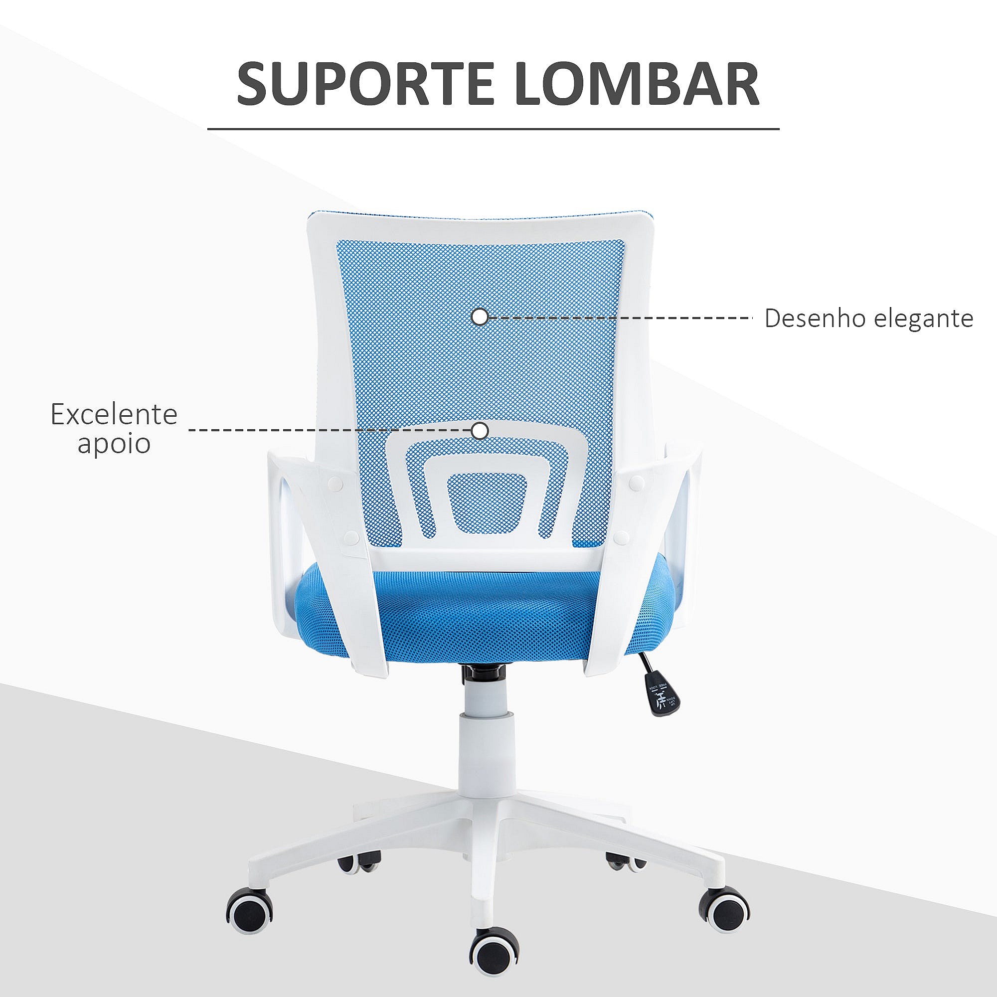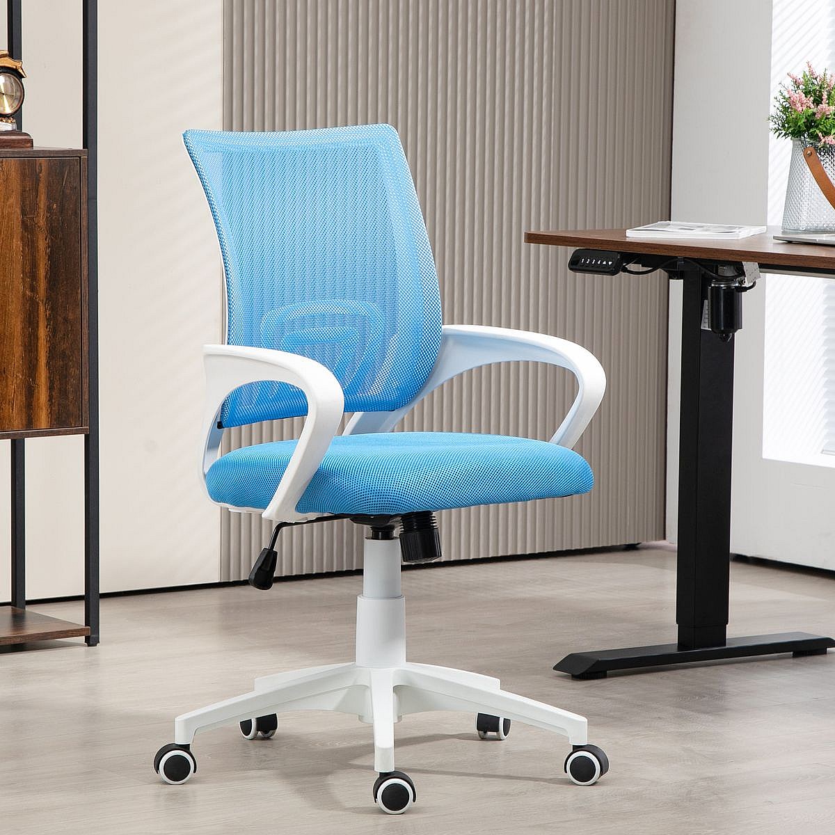 Silla de oficina Waco Homcom basculante con reposabrazos + ruedas azul 89-109x57x55 cm