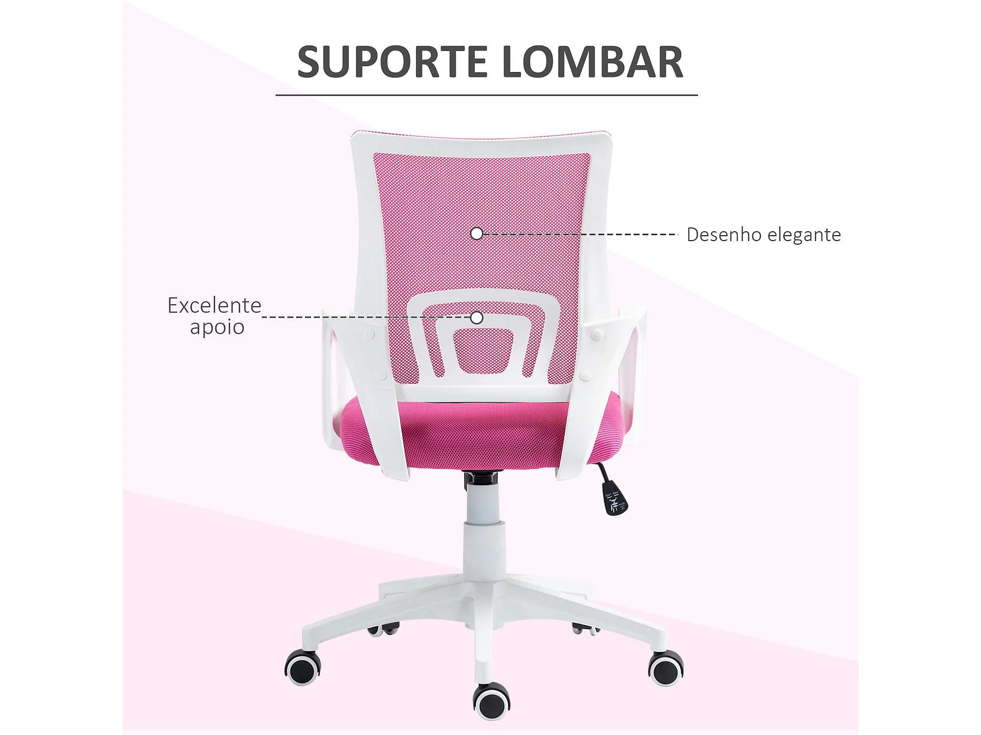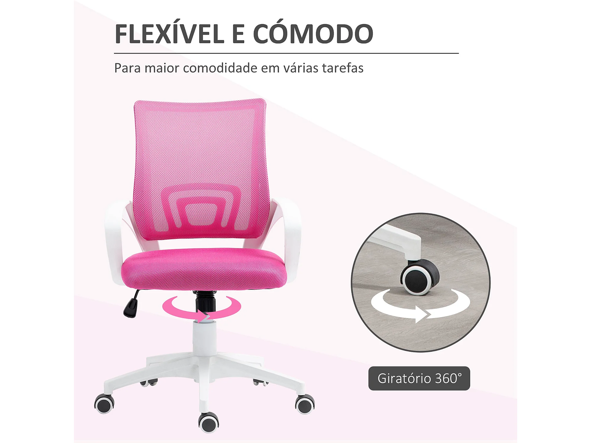 Silla de oficina Waco Homcom basculante con reposabrazos + ruedas rosa 89-109x57x55 cm