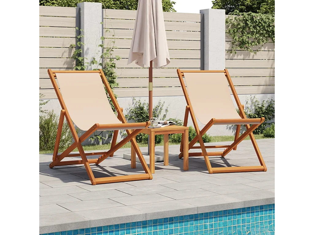 Silla de playa plegable madera maciza de eucalipto y tela beige