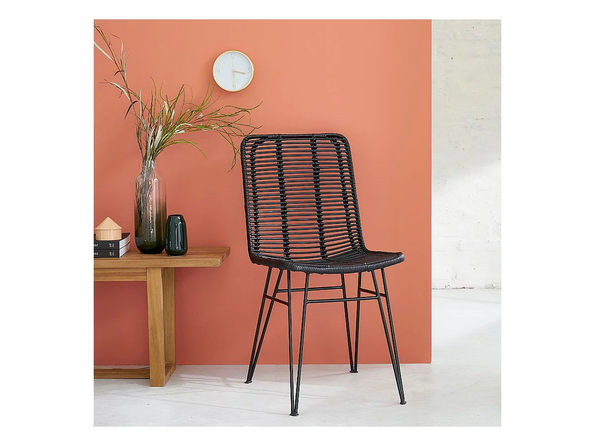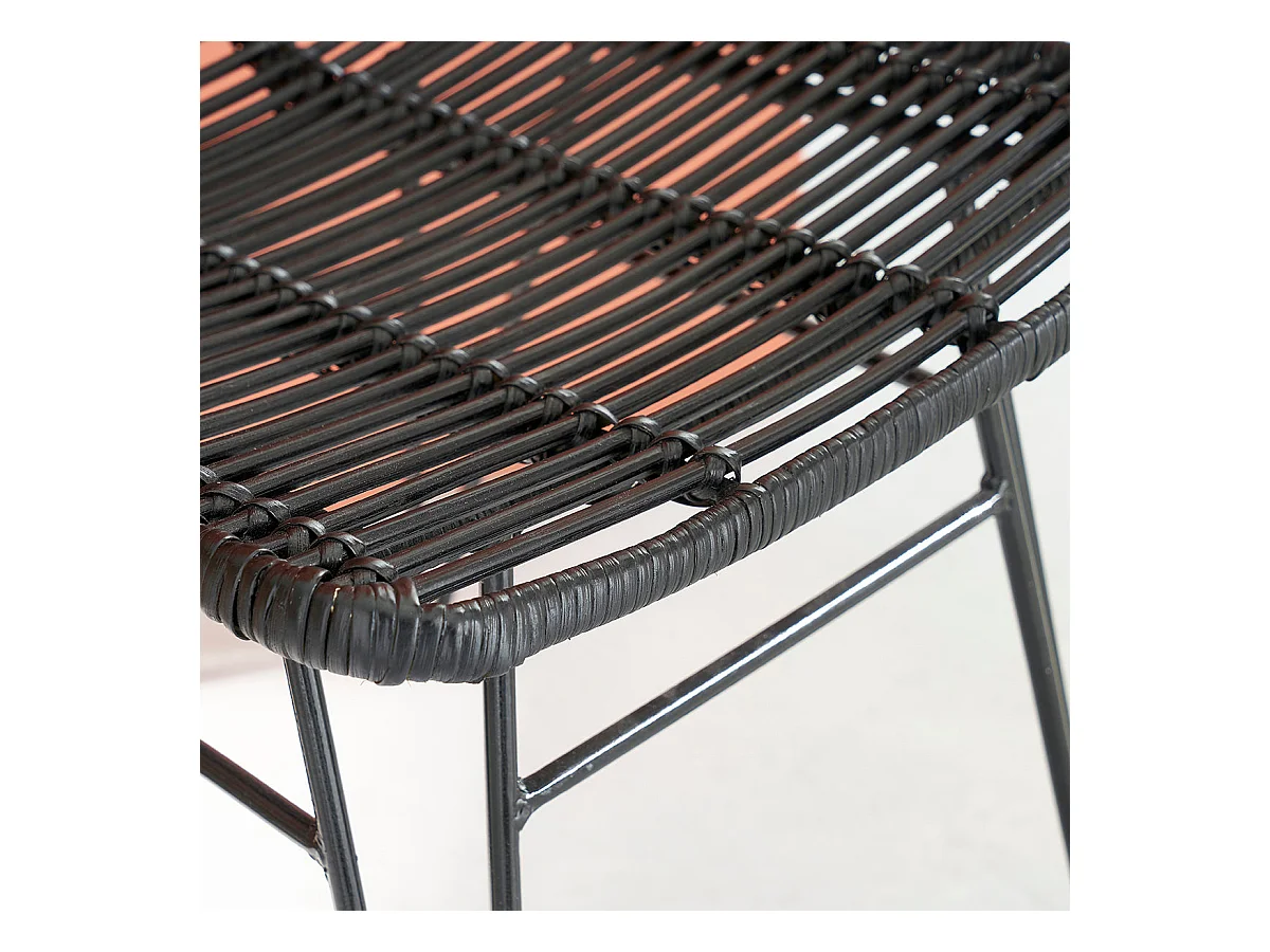 Set de 2 sillas negras de ratán, tela y metal PEACOCK