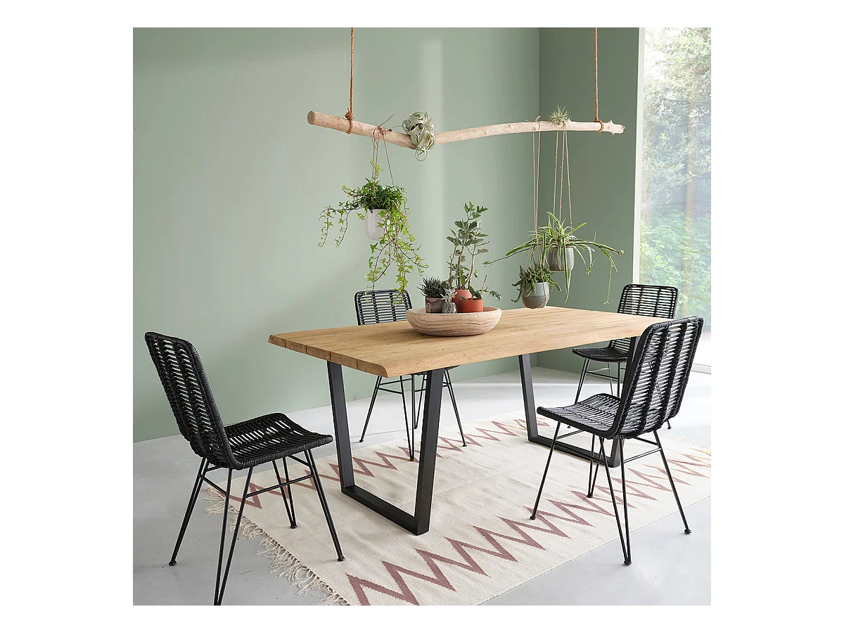 Silla de mimbre y metal Aurélien con reposabrazos negros para un estilo bohemio moderno