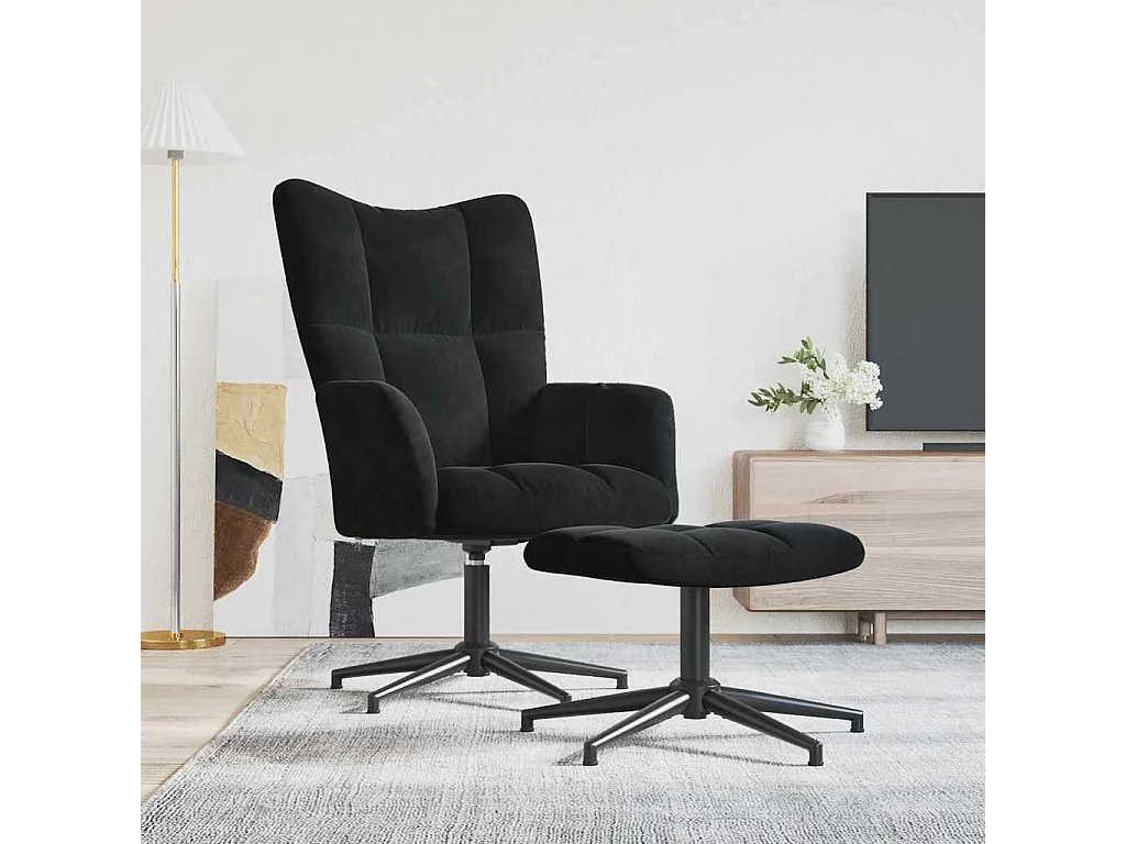 Sillón de relax con taburete terciopelo negro