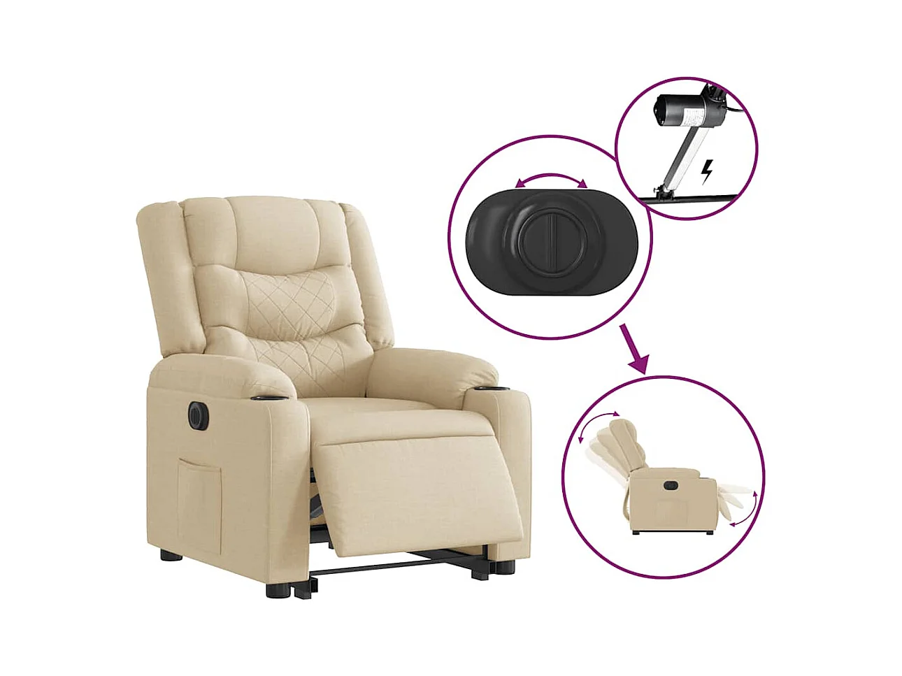 Sillón de relax | Silla | Sillón reclinable eléctrico de tela crema SHL9274