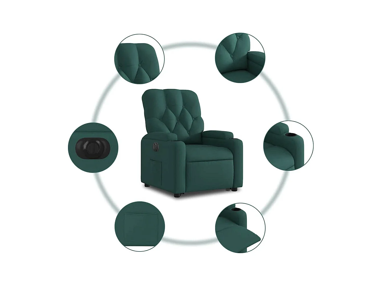 Silla de relax | Sillón eléctrico reclinable elevable de tela verde oscuro SHL5298