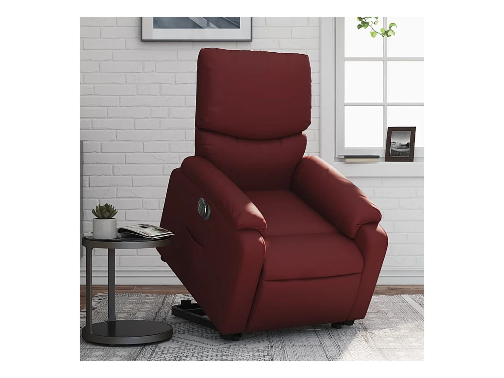 Silla de relax | Sillón elevable eléctrico cuero artificial rojo tinto SHL9550