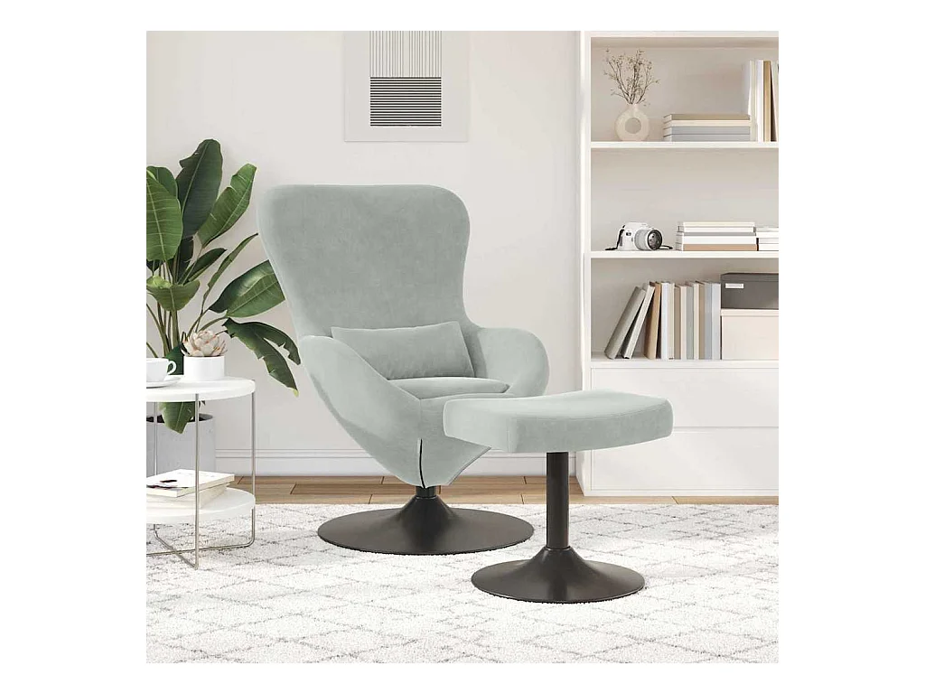 Silla de relax | Sillón Huevo con Puff Gris claro 63x73x90 cm Terciopelo SHL4753