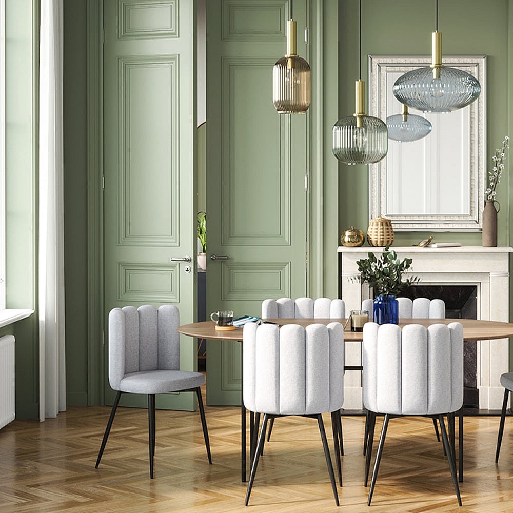 Set de 2 sillas de tela gris con patas de metal negras - Rosy