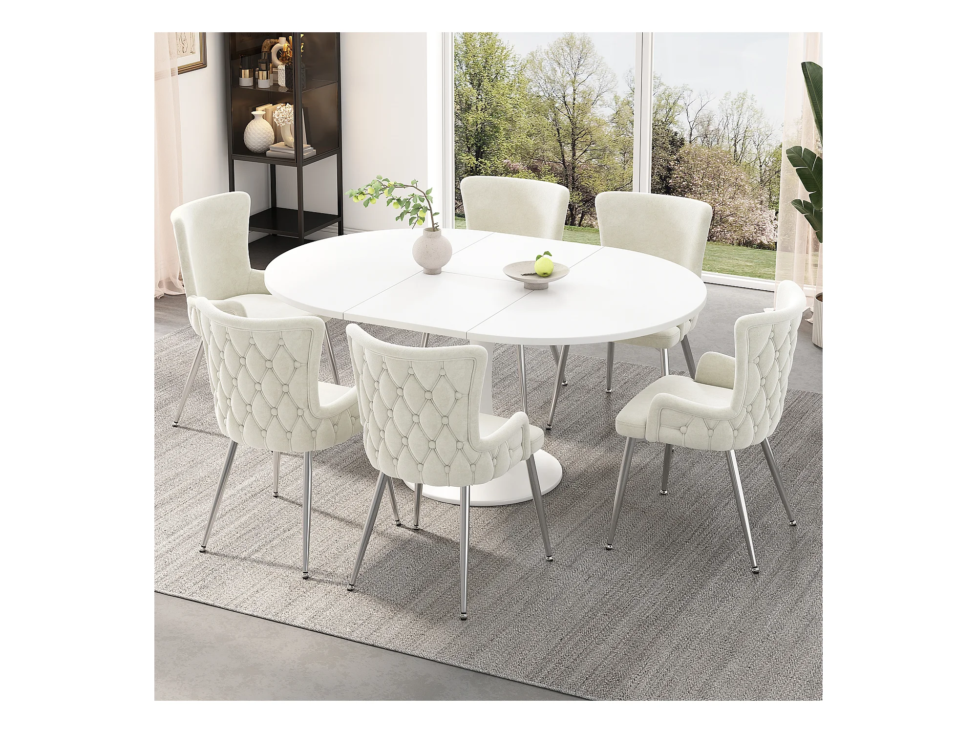 Silla de ocio beige de terciopelo imitación conejo con patas de metal estables para sala de estar y dormitorio, juego de 6