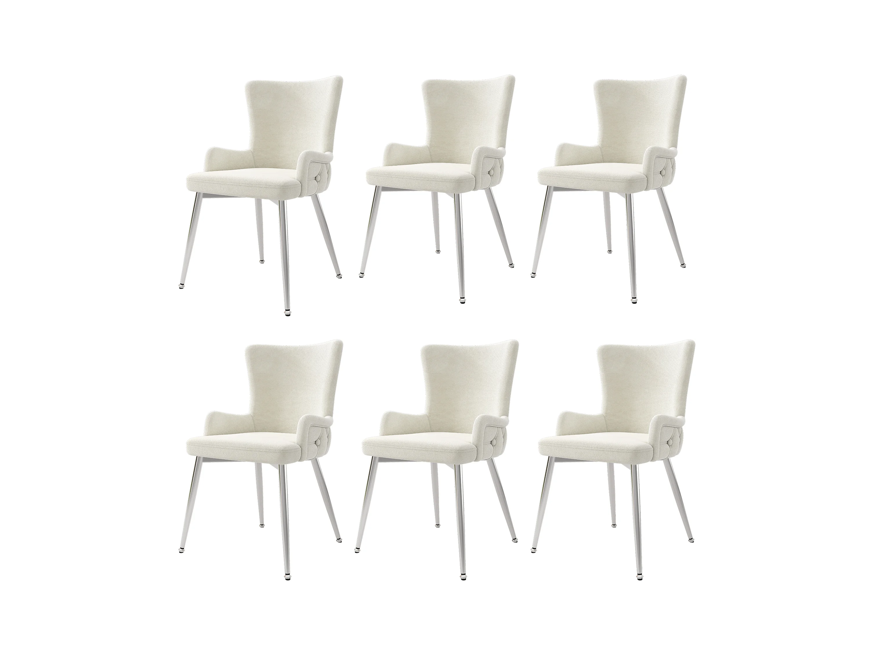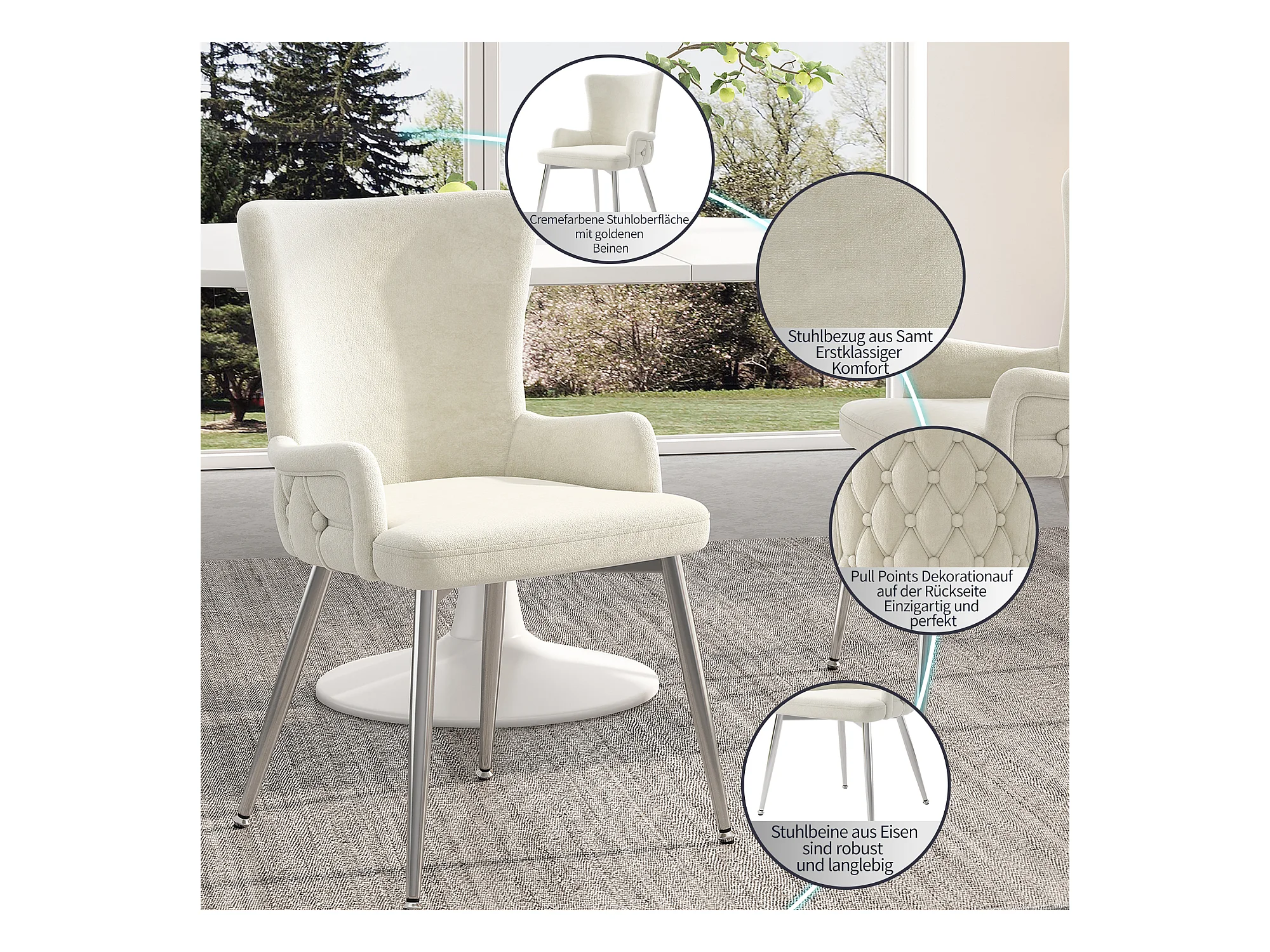 Silla de terciopelo beige de lujo con reposabrazos y patas ajustables de metal plateado para sala de estar, dormitorio, salón, juego de 6