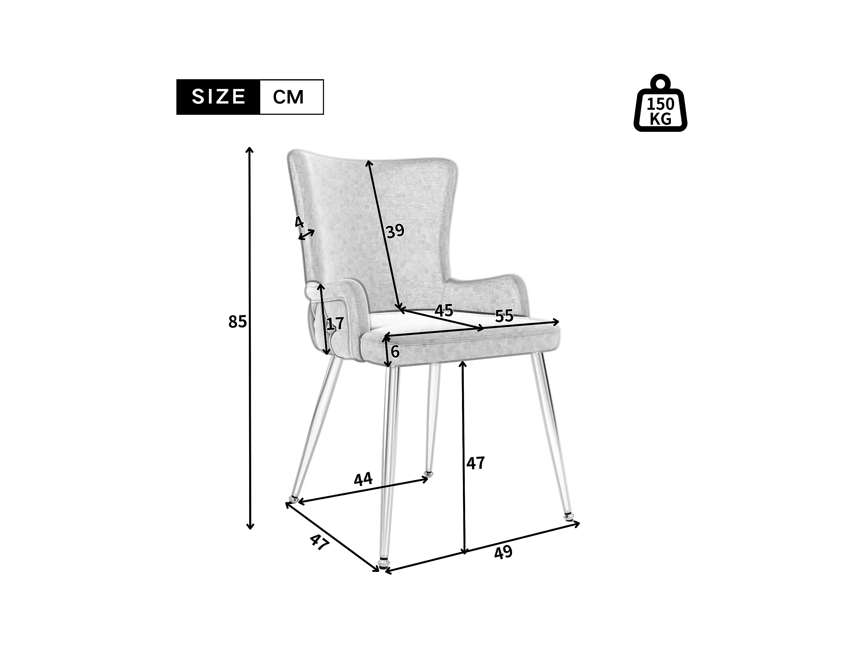 Silla de terciopelo gris con patas de metal plateado, sillón, dormitorio moderno y cómodo, juego de 6