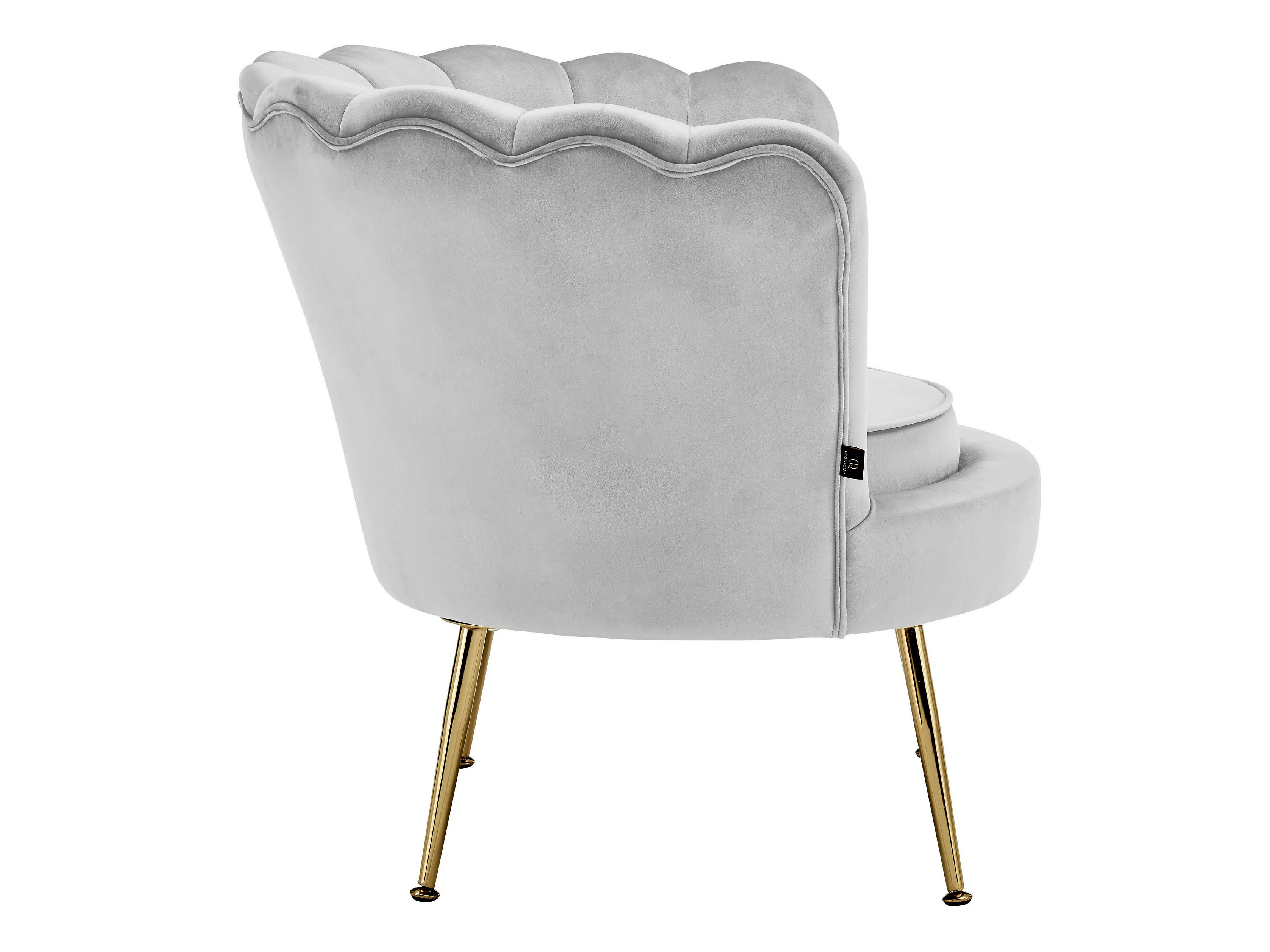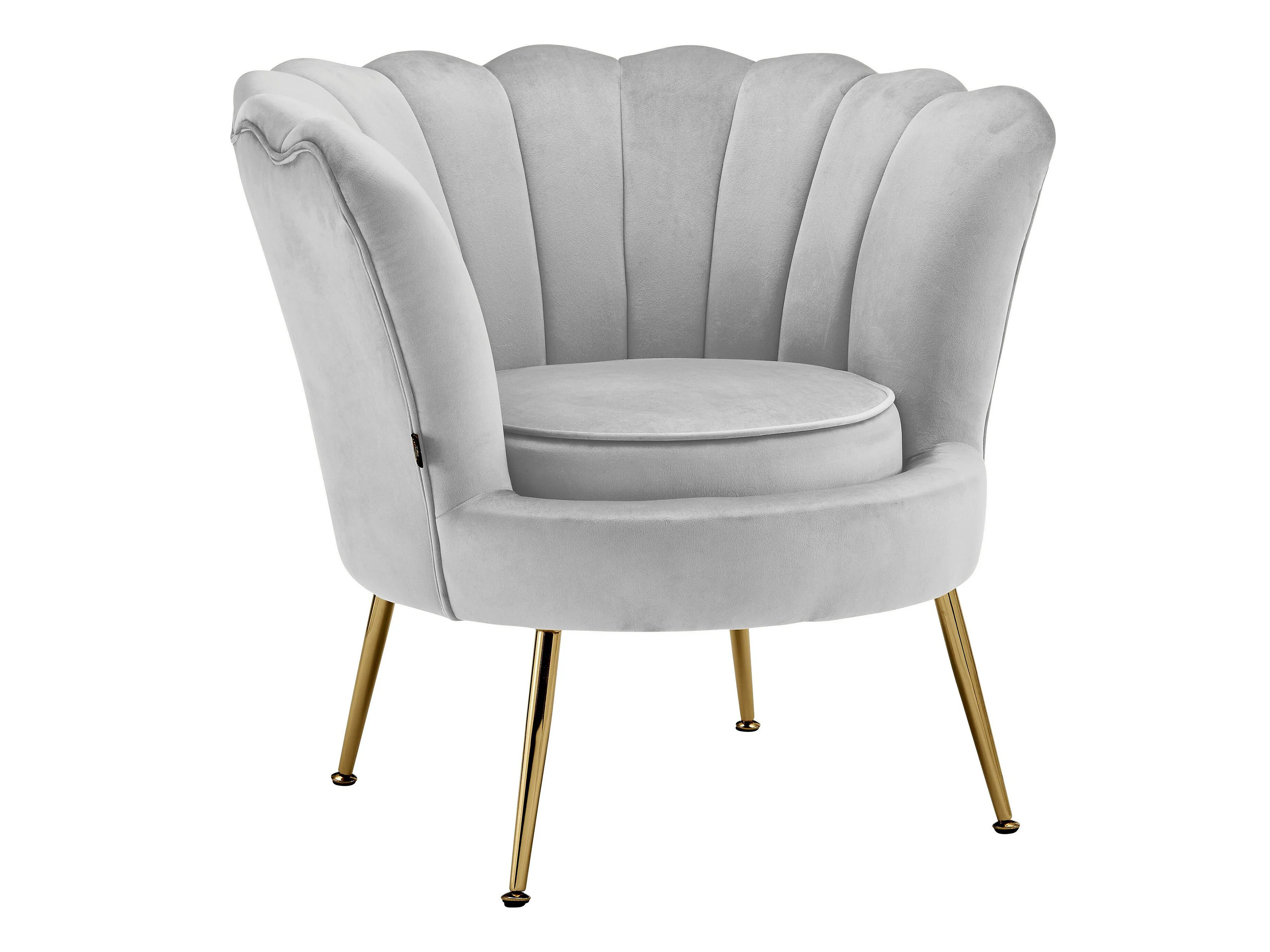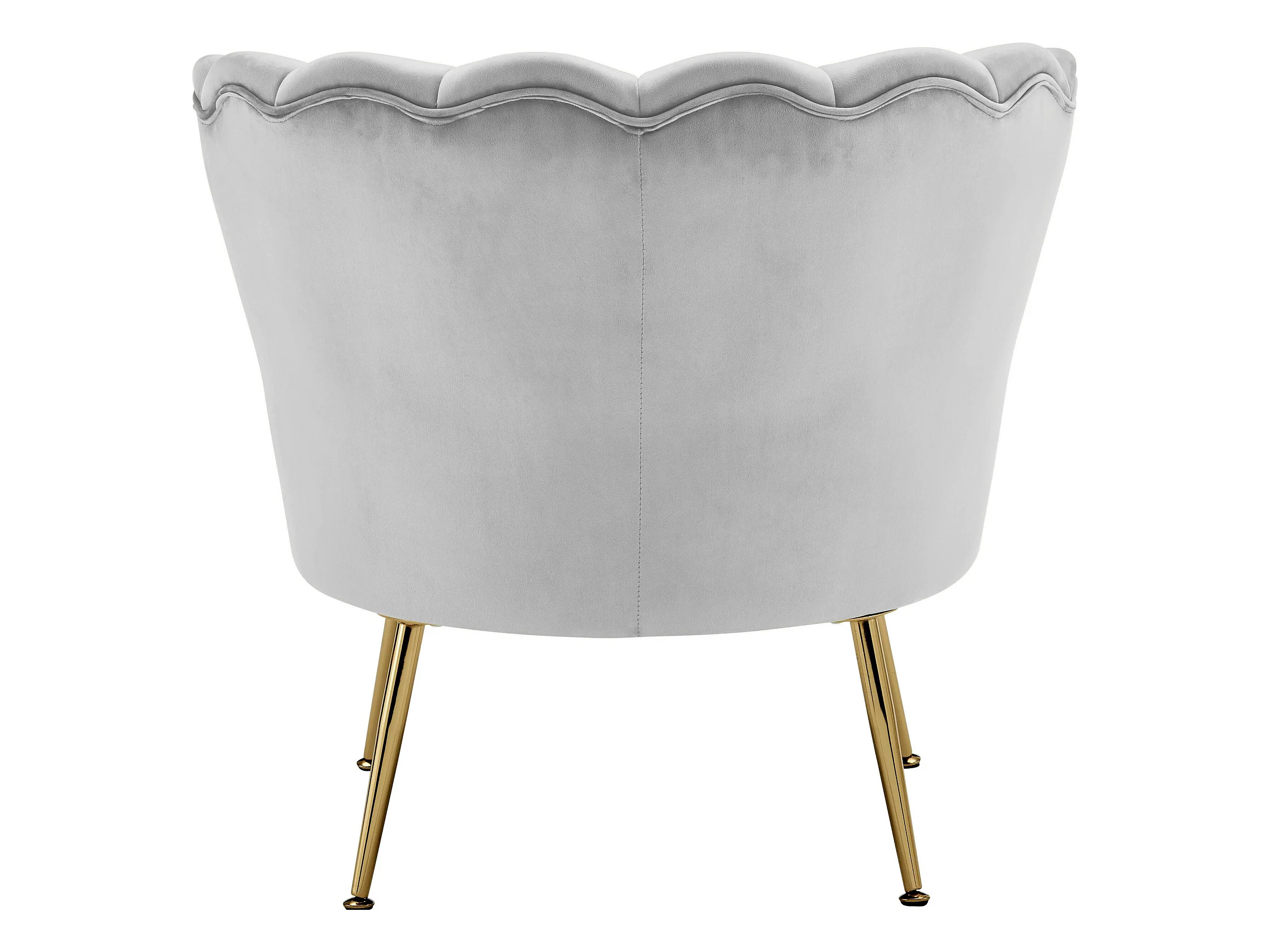 Silla decorativa tapizada con taburete en terciopelo gris.