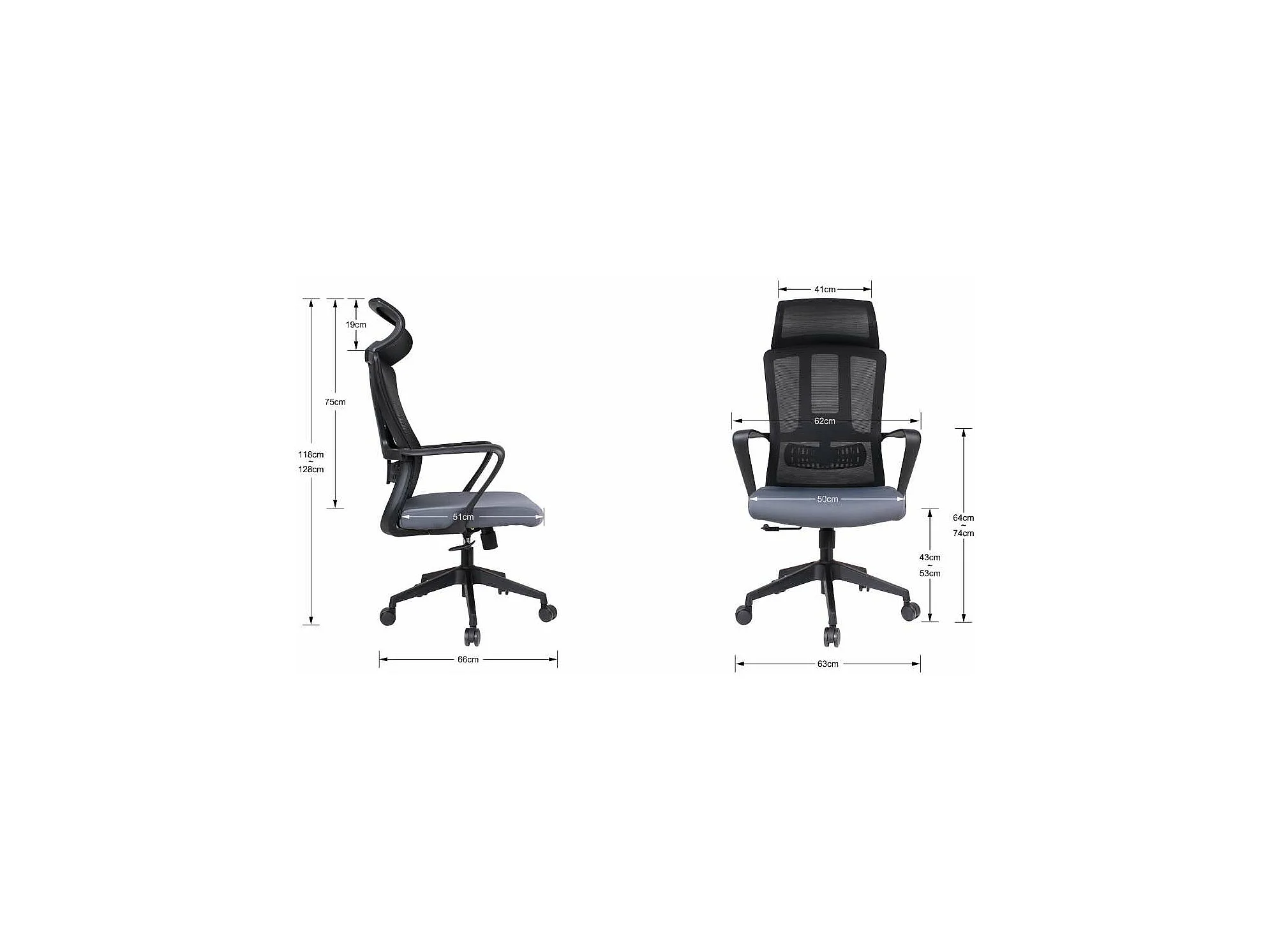 Silla despacho giratoria elevable con reposacabezas acabado negro/gris, 63cm(ancho) 118/12