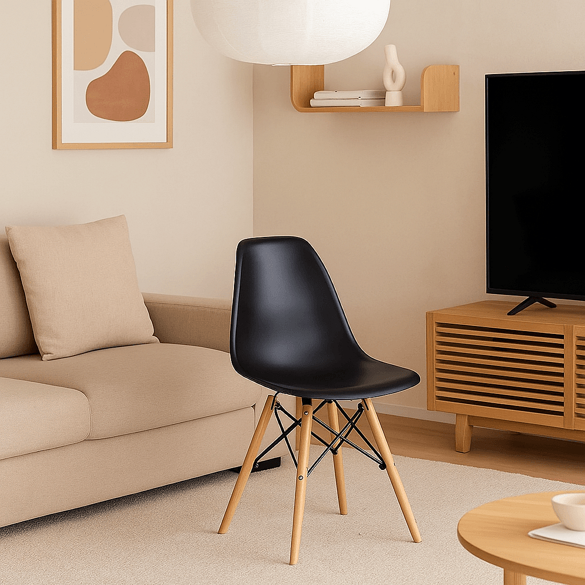 Silla Dinamarca asiento curvado negro 82x46x49 cm