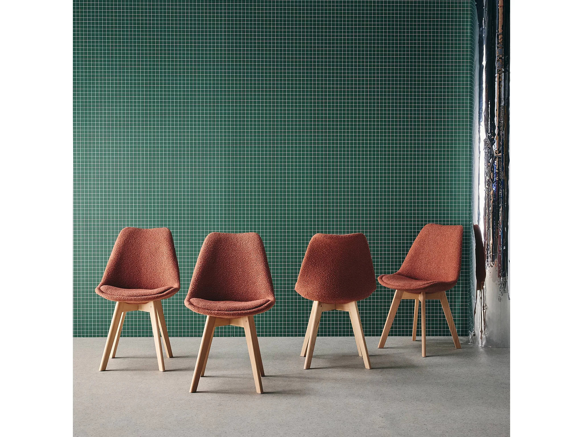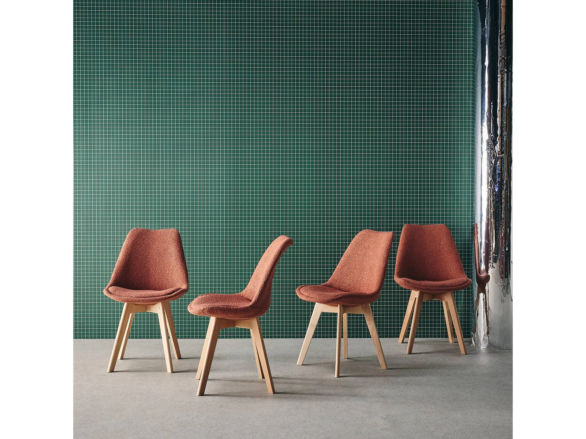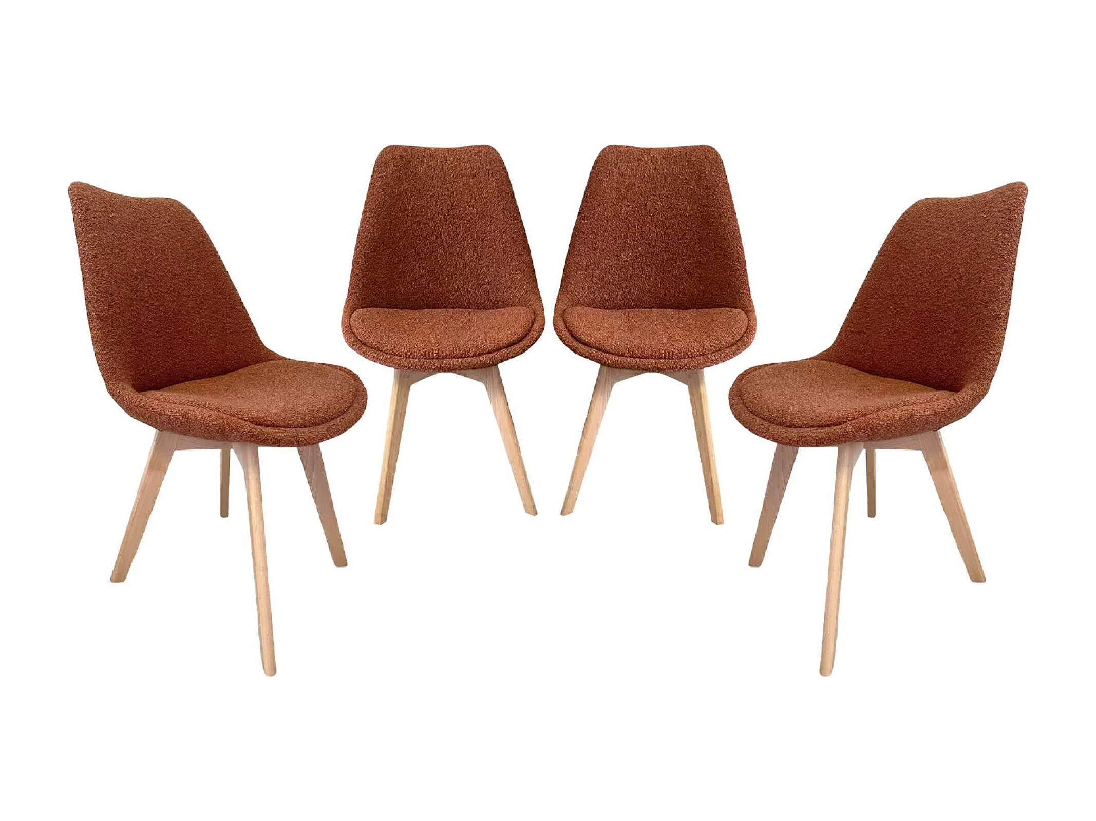 Silla escandinava de madera de haya y borreguito texturizada, set de 4