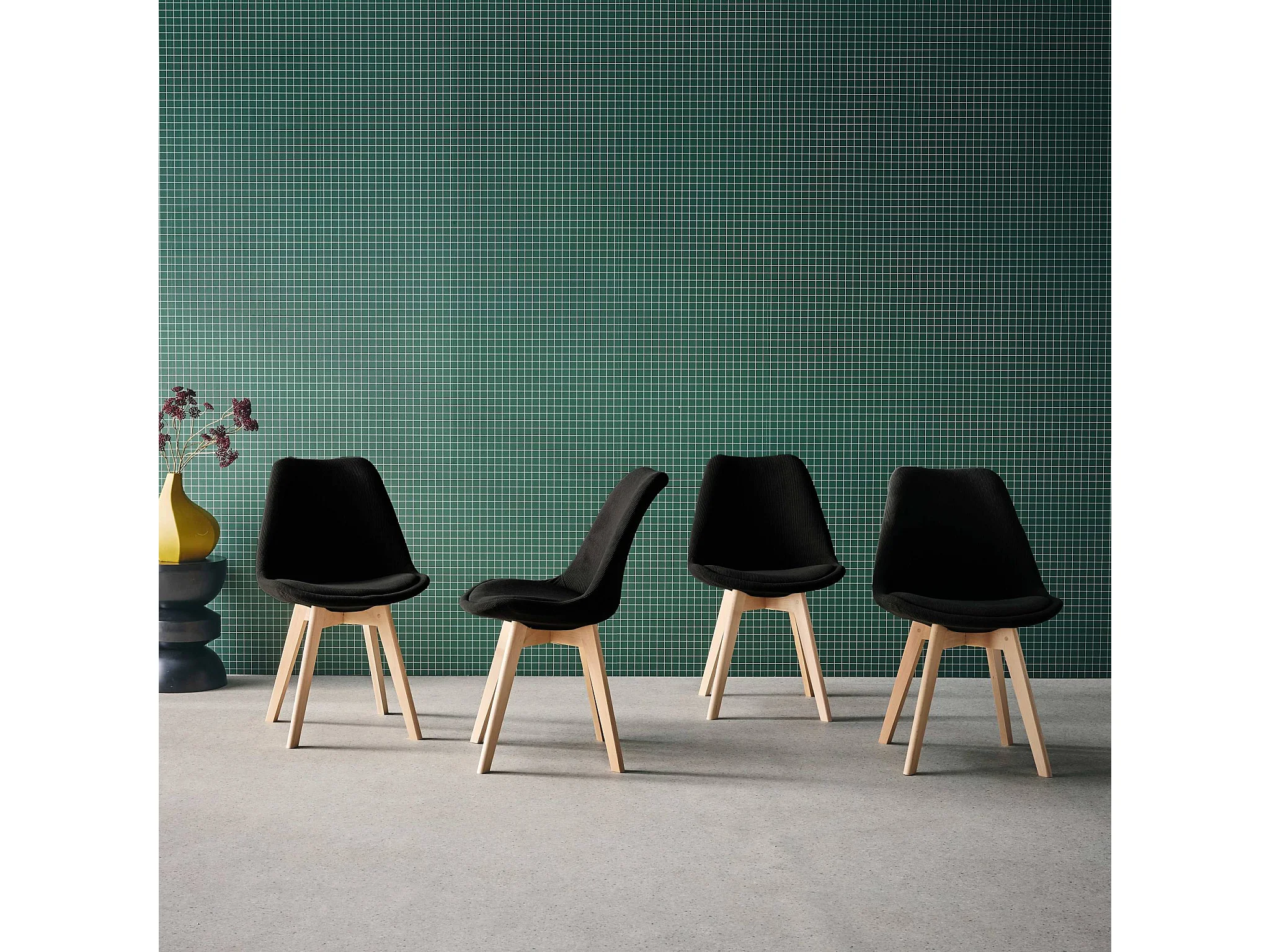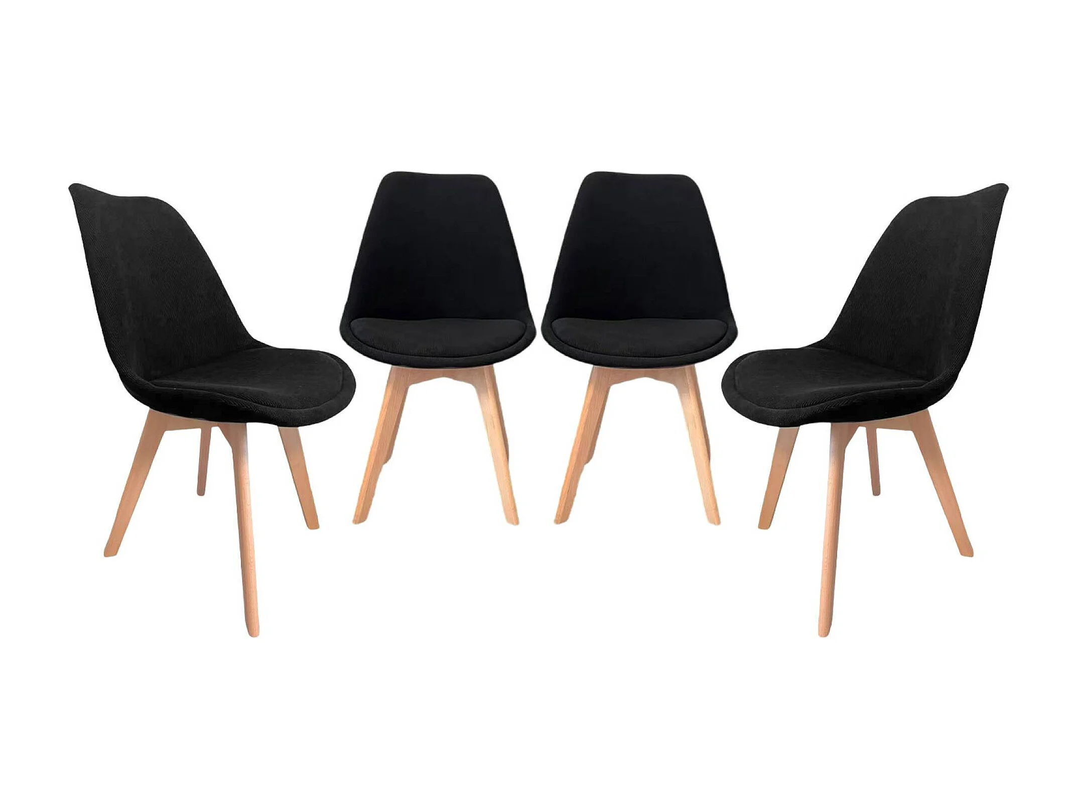 Silla escandinava de madera de haya y pana fina, set de 4 negro