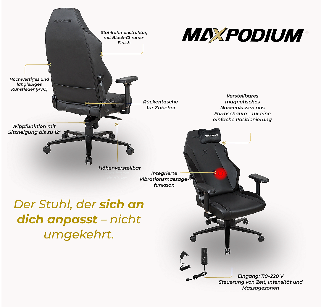 Mit dem HEAVY setzt MaxPodium neue Maßstäbe in Qualität, Langlebigkeit, Design und Komfort.
